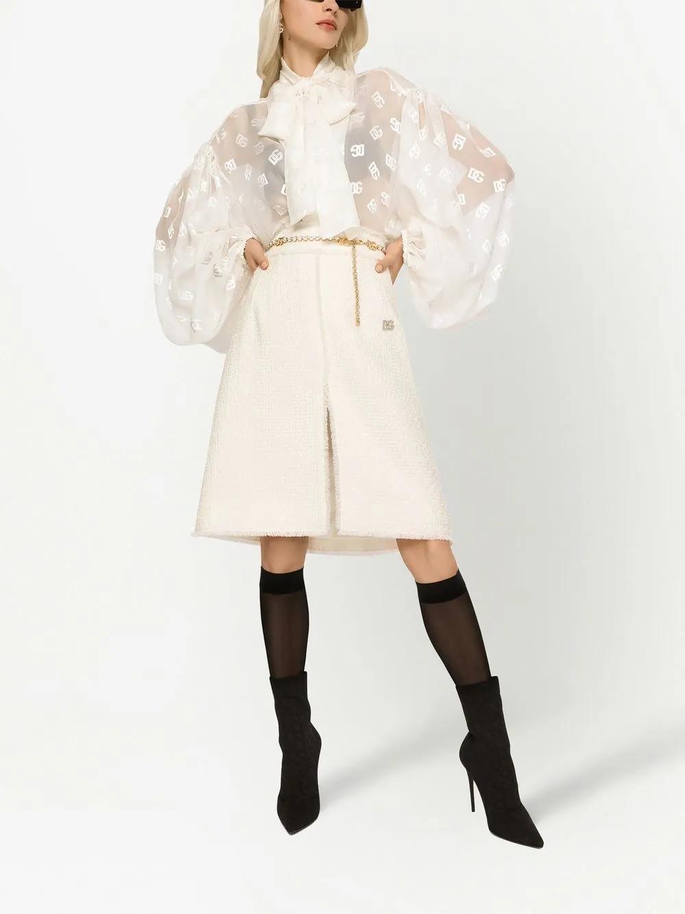 Dolce & Gabbana front-slit tweed midi skirt - White