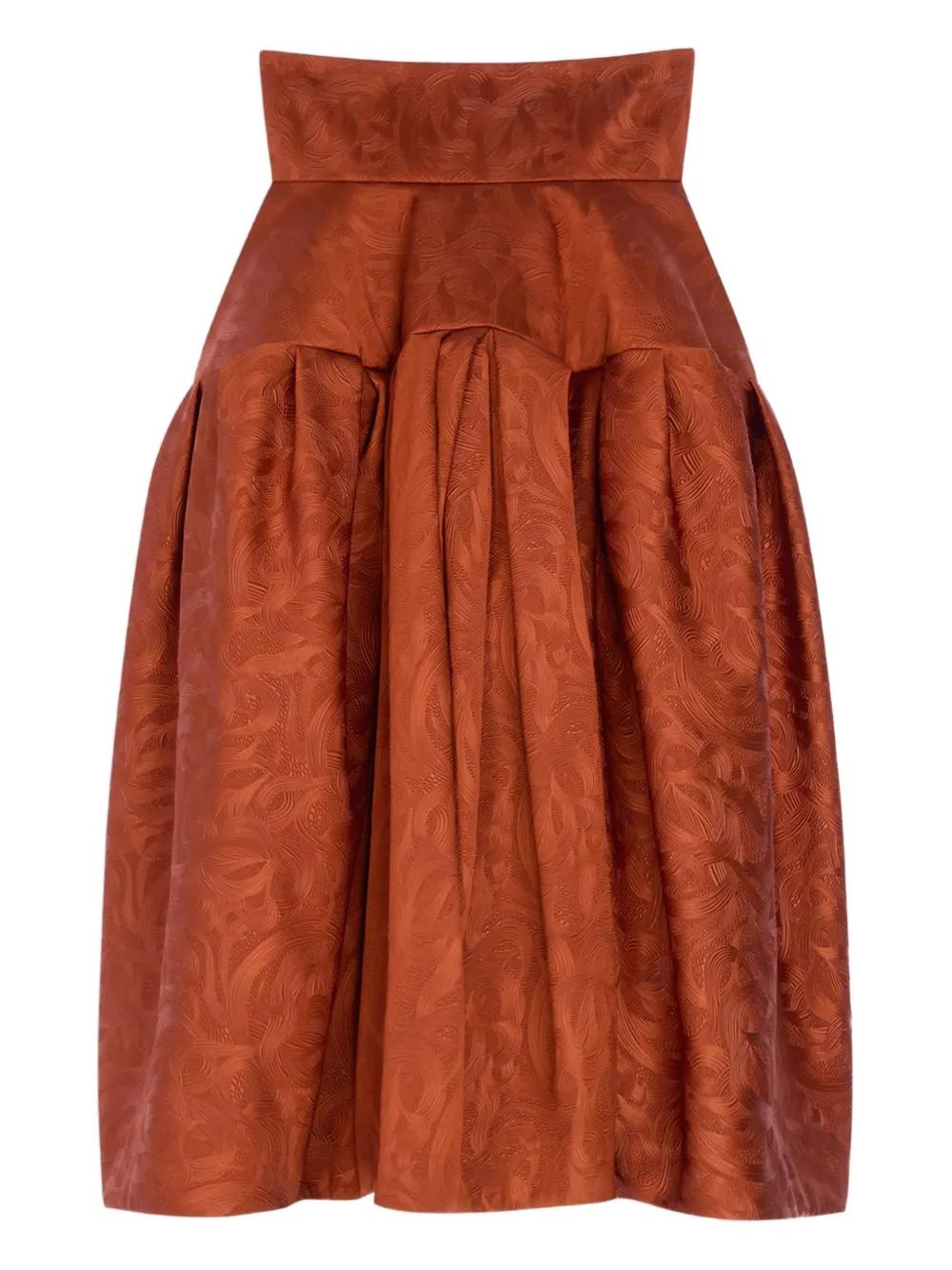 orange swirl jacquard high waist zip fastening midi length