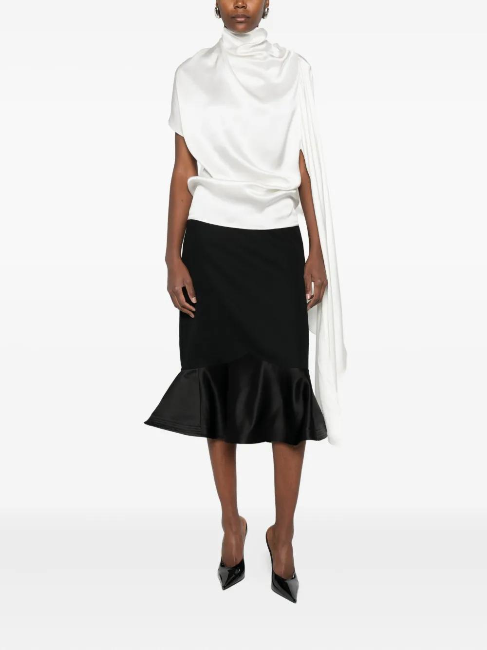 black ruffled hem tonal stitching mid length silk-wool