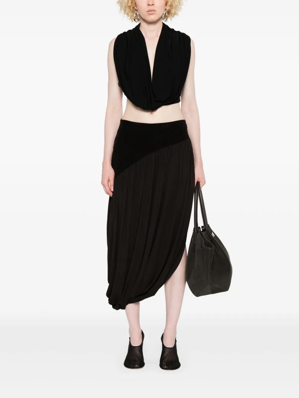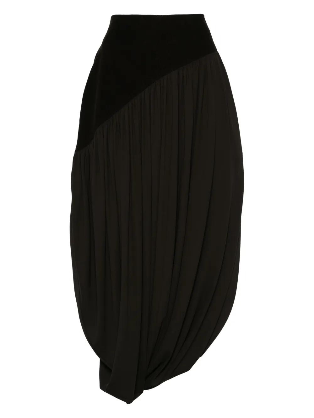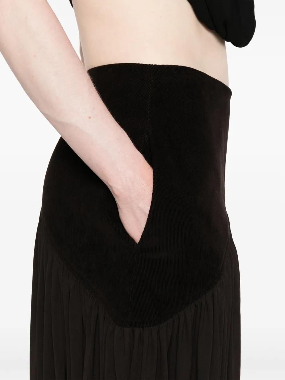 black concealed side zip fastening two side inset pockets corduroy detail asymmetric hem