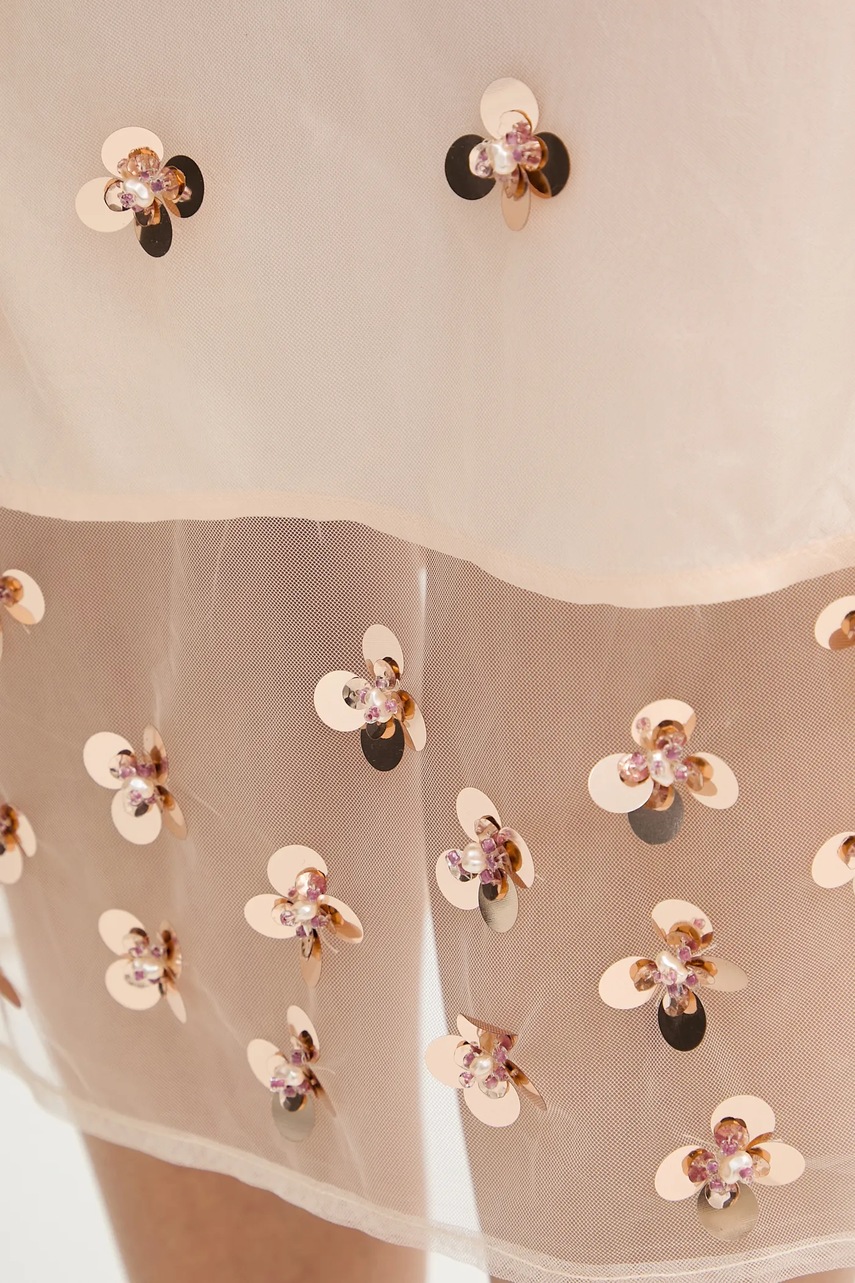 - Prosty, nie blokujący ruchów fason. - Boczne zapięcie na kryty suwak. - Model z aplikacją wykonaną z dwustronnych cekinów. - Model na podszewce. - Cienka, lekko elastyczna dzianina. - Szerokość w pasie: 36 cm. - Długość: 81 cm. - Wymiary podane dla rozmiaru: 36.