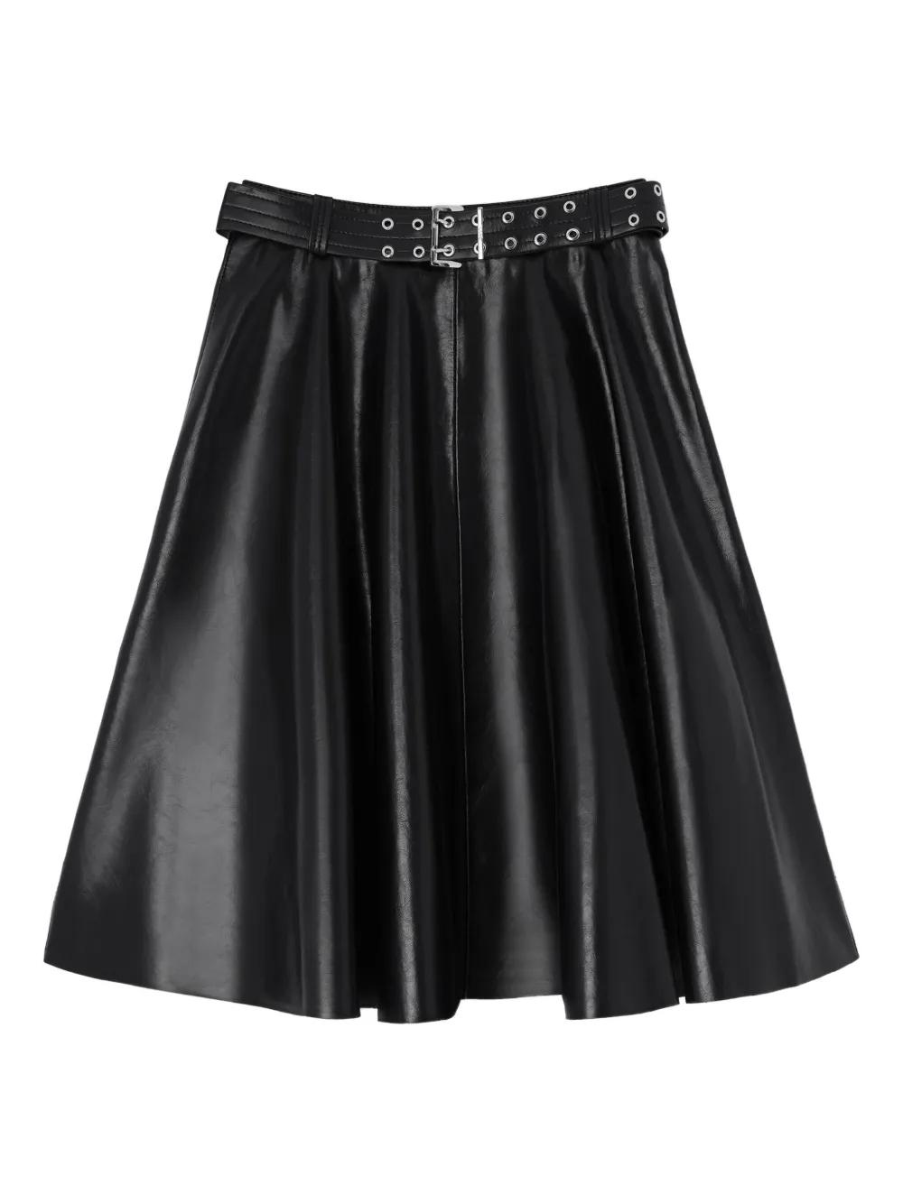 black belt buckle detail a-line shape panelled construction concealed zip fastening