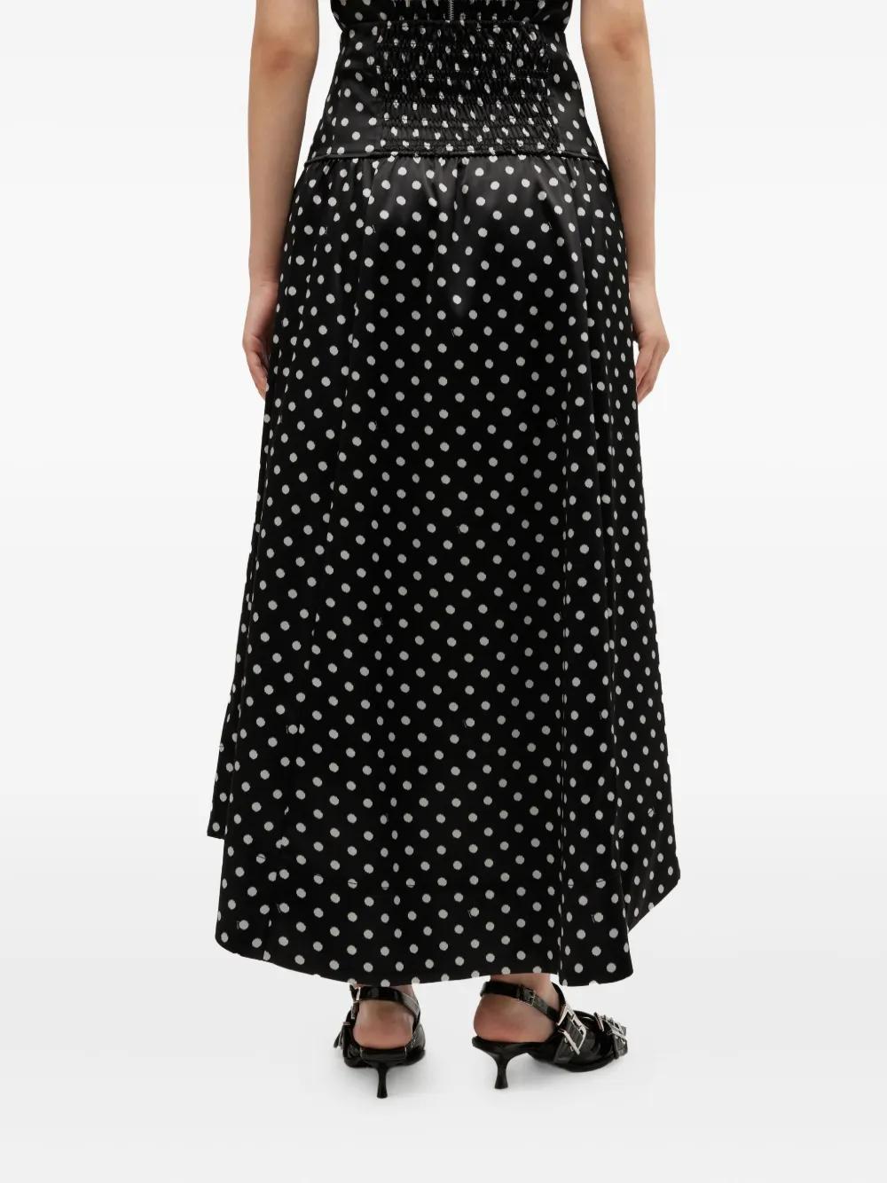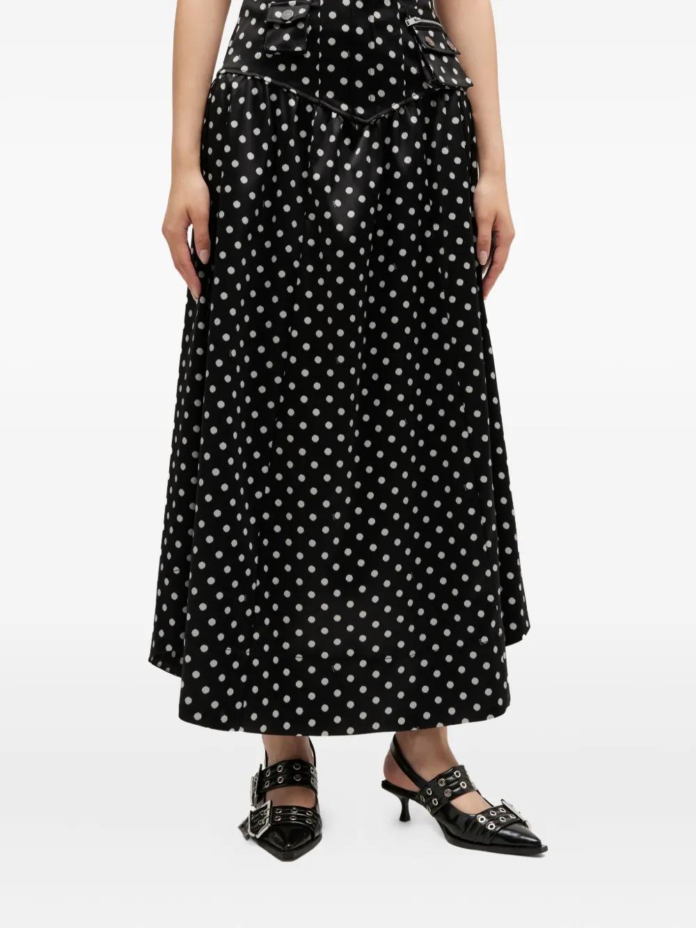 black polka-dot pattern zip detail gathered detail sleeveless midi length