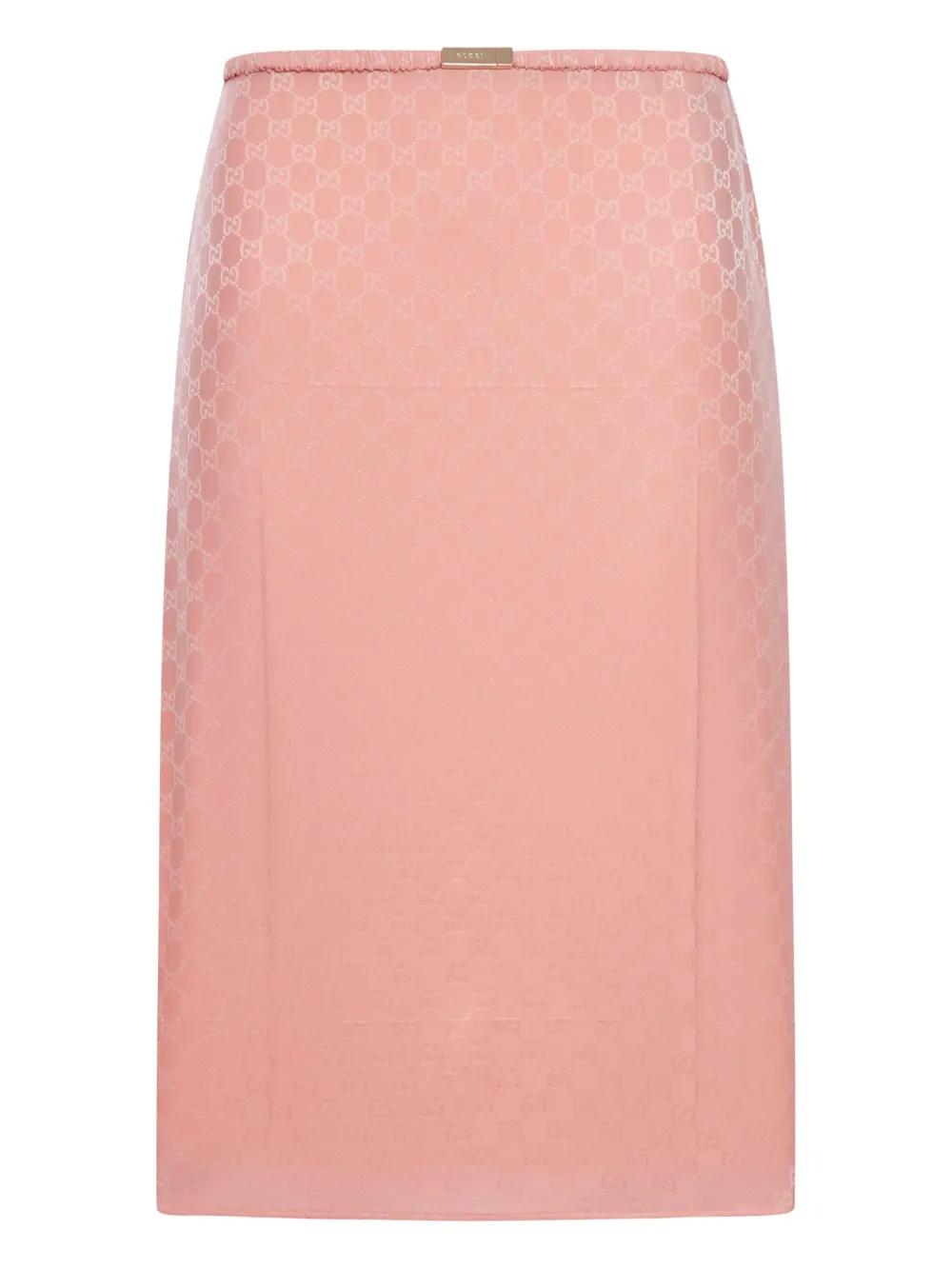 pink logo jacquard elasticated ruched waistband rear vent rear zip fastening