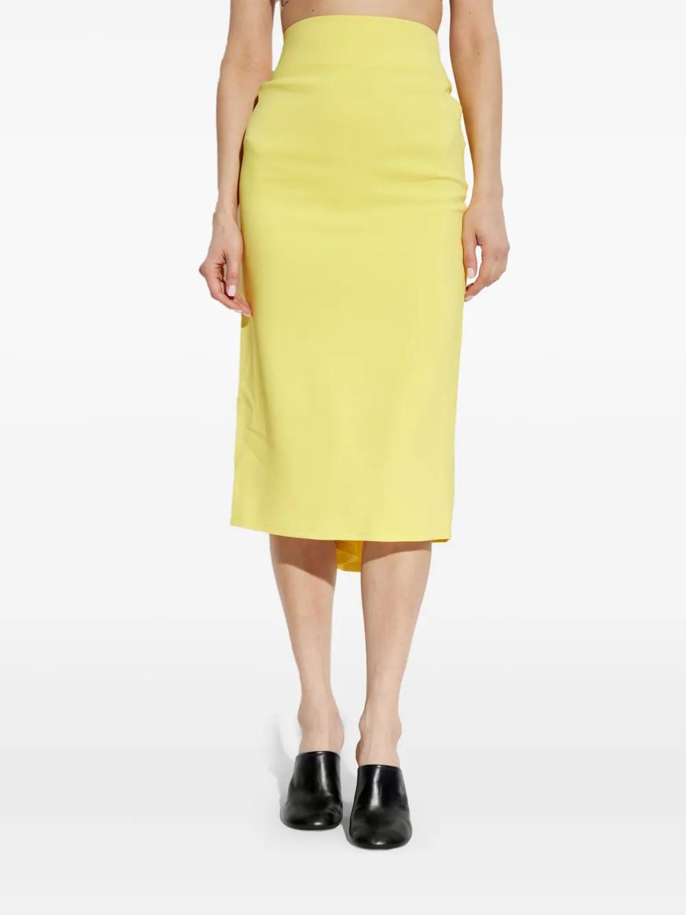 pastel yellow concealed side zip fastening draped detailing high-waisted straight hem