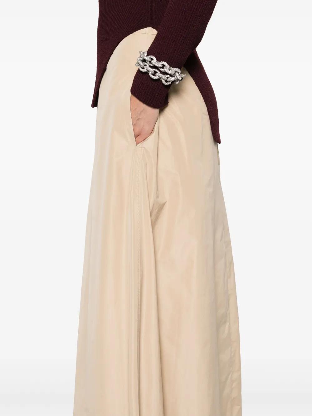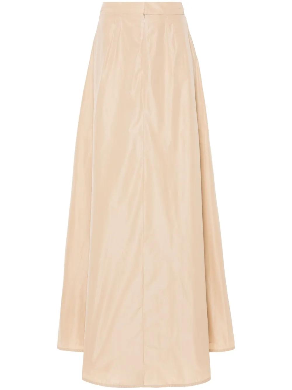 sand beige recycled polyester textured finish two side inset pockets seam detailing full lining long length flared skirt concealed rear zip fastening