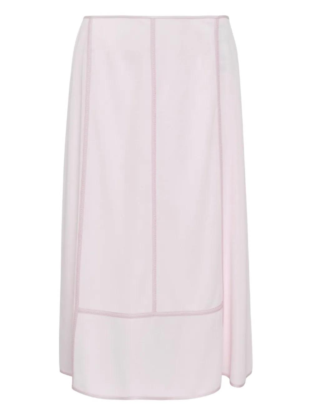 pink crepe side panels seam detail concealed zip fastening A-line shape