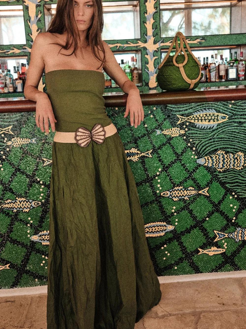 green ribbed detail A-line high-waisted This piece can be styled in multiple ways.