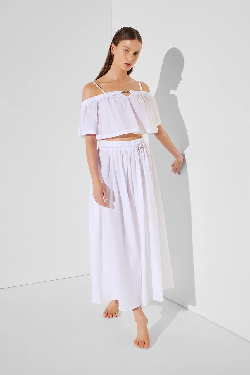 Karl Lagerfeld spódnica bawełniana kolor biały maxi rozkloszowana A2W46043