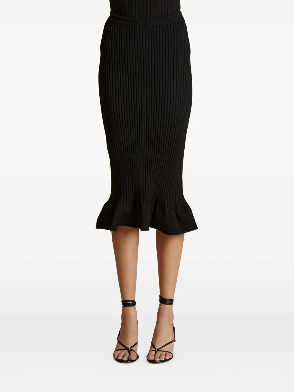 black wool blend ribbed knit elasticated waistband straight hem silver-tone logo-embossed buttons side press-stud fastening