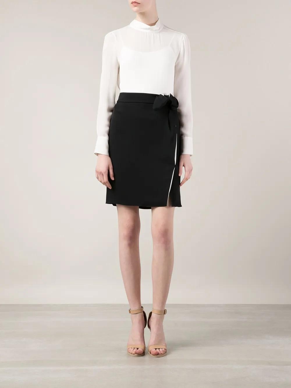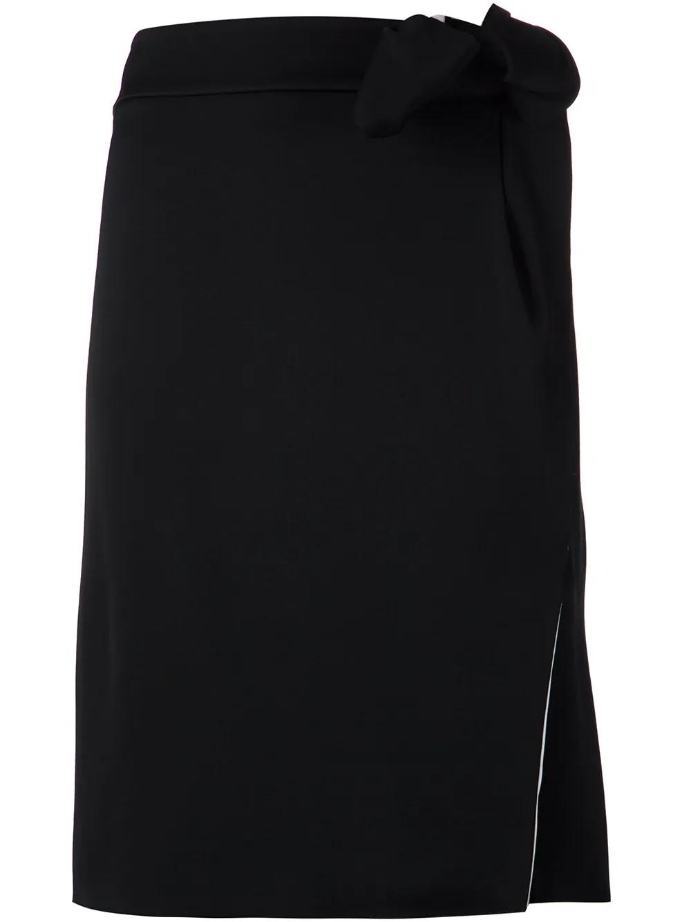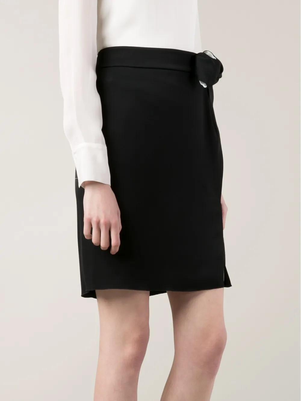 Black and white bow detail straight skirt from Lanvin featuring a high rise, draped details, a concealed fastening and a mid-length.