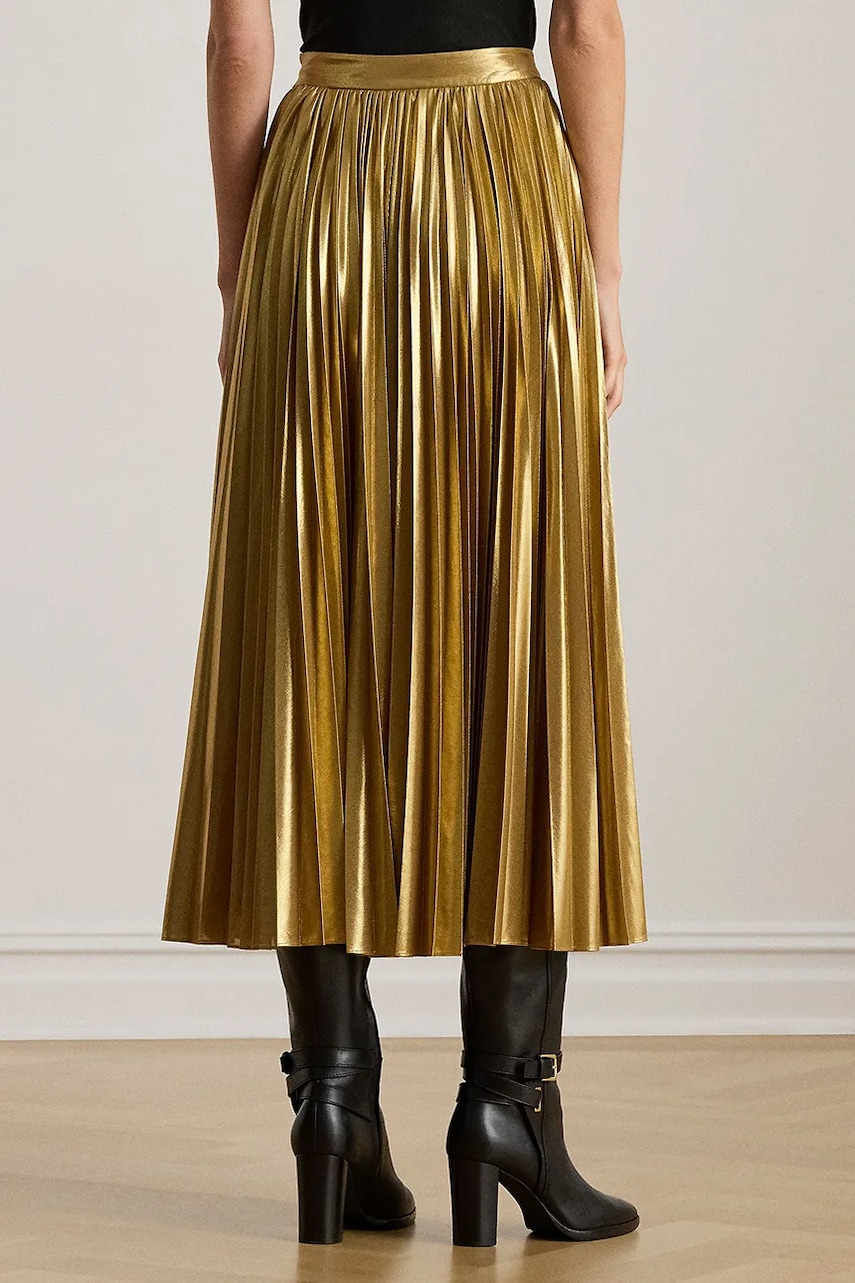 Lauren Ralph Lauren spódnica kolor złoty midi rozkloszowana 200P03432