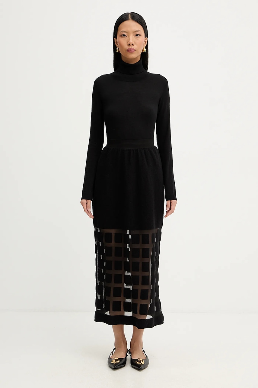 Liviana Conti spódnica wełniana kolor czarny midi rozkloszowana L5WA78