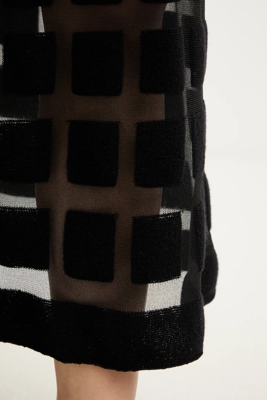 - Dopasowana góra i rozkloszowany dół. - Elastyczna listwa w pasie zapewnia indywidualne dopasowanie. - Model ze wstawkami z transparentnego materiału. - Szerokość w pasie: 33 cm. - Szerokość w biodrach: 50 cm. - Długość spódnicy: 90 cm. - Wymiary podane dla rozmiaru: S.