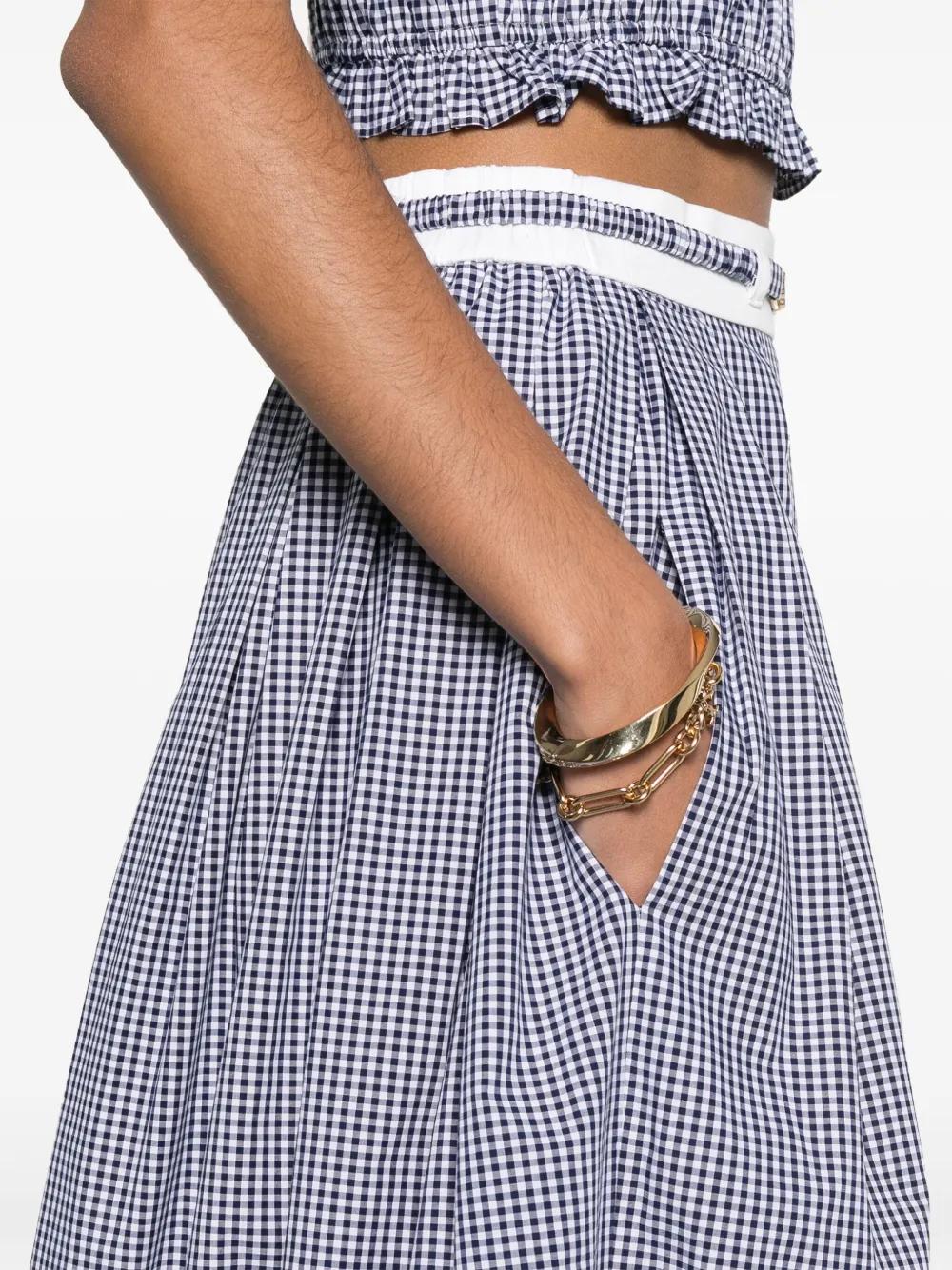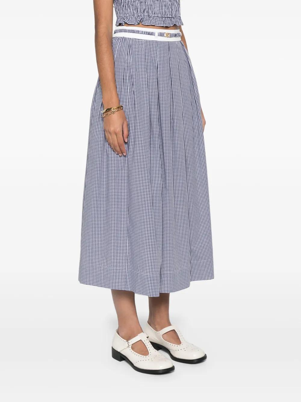 navy blue elasticated waistband two side slit pockets detachable waist belt pleat detailing