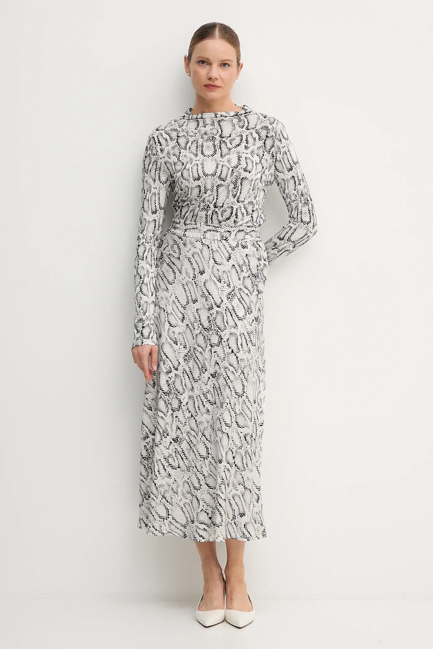 - Rozkloszowany fason. - Elastyczna listwa w pasie. - Cienka, nieelastyczna tkanina. - Szerokość w pasie: 36 cm. - Długość: 97 cm. - Wymiary podane dla rozmiaru: 36.