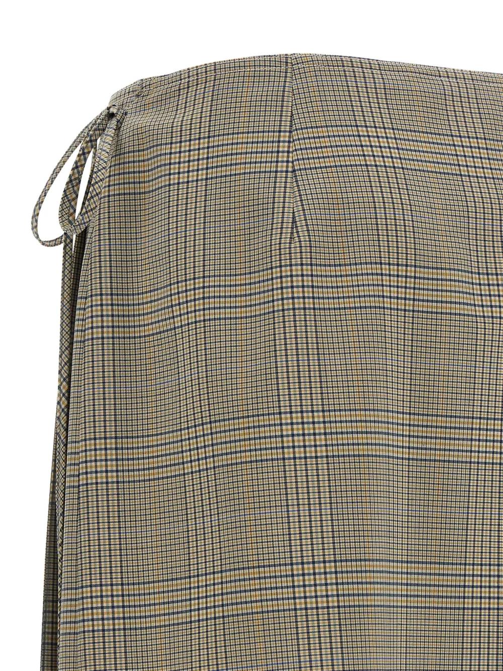 gray checked pattern side lace closure front pleats wrap style wool blend
