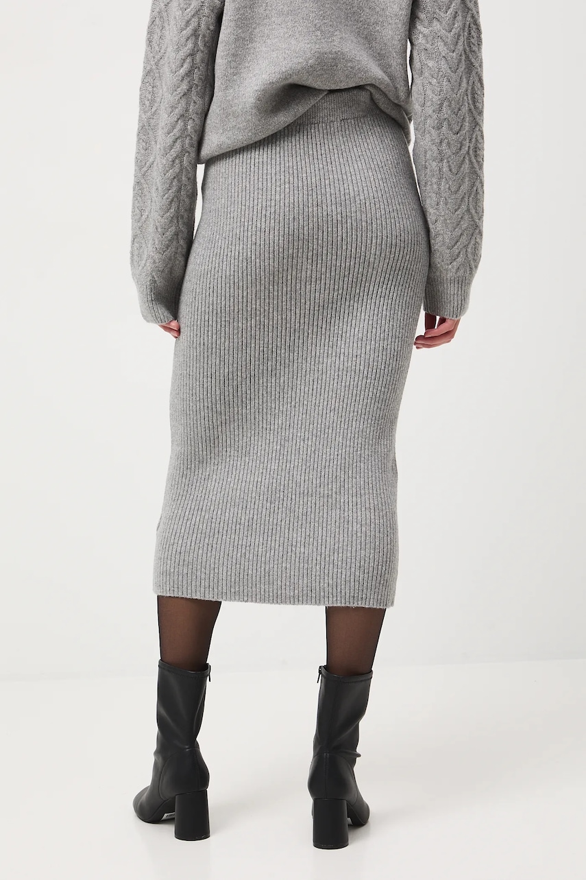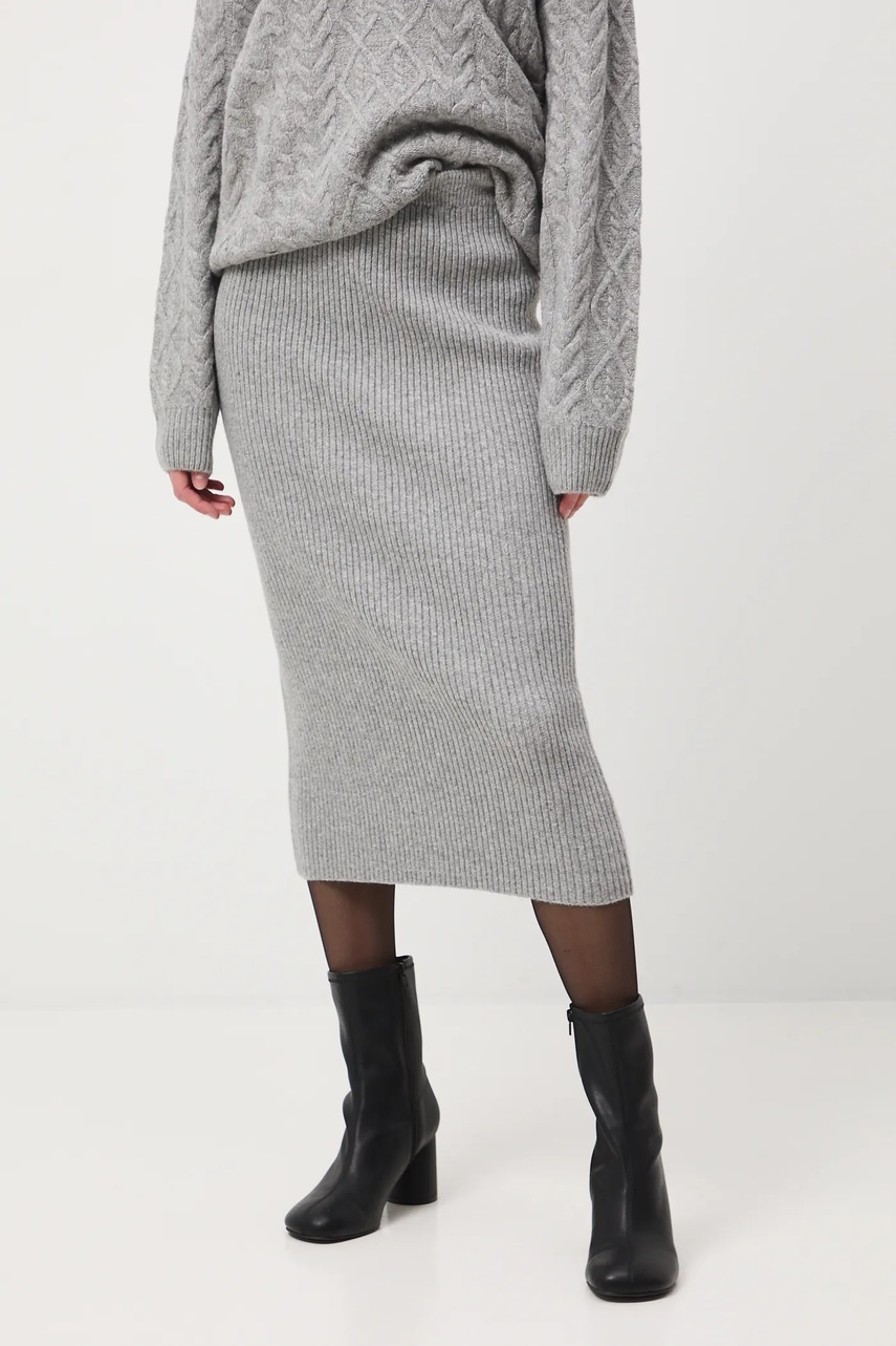 - Prosty fason. - Podwyższony stan z elastyczną listwą w pasie. - Prążkowana dzianina. - Melanżowa dzianina. - Model o długości maxi. - Szerokość w pasie: 35 cm. - Długość: 78 cm. - Wymiary podane dla rozmiaru: S.