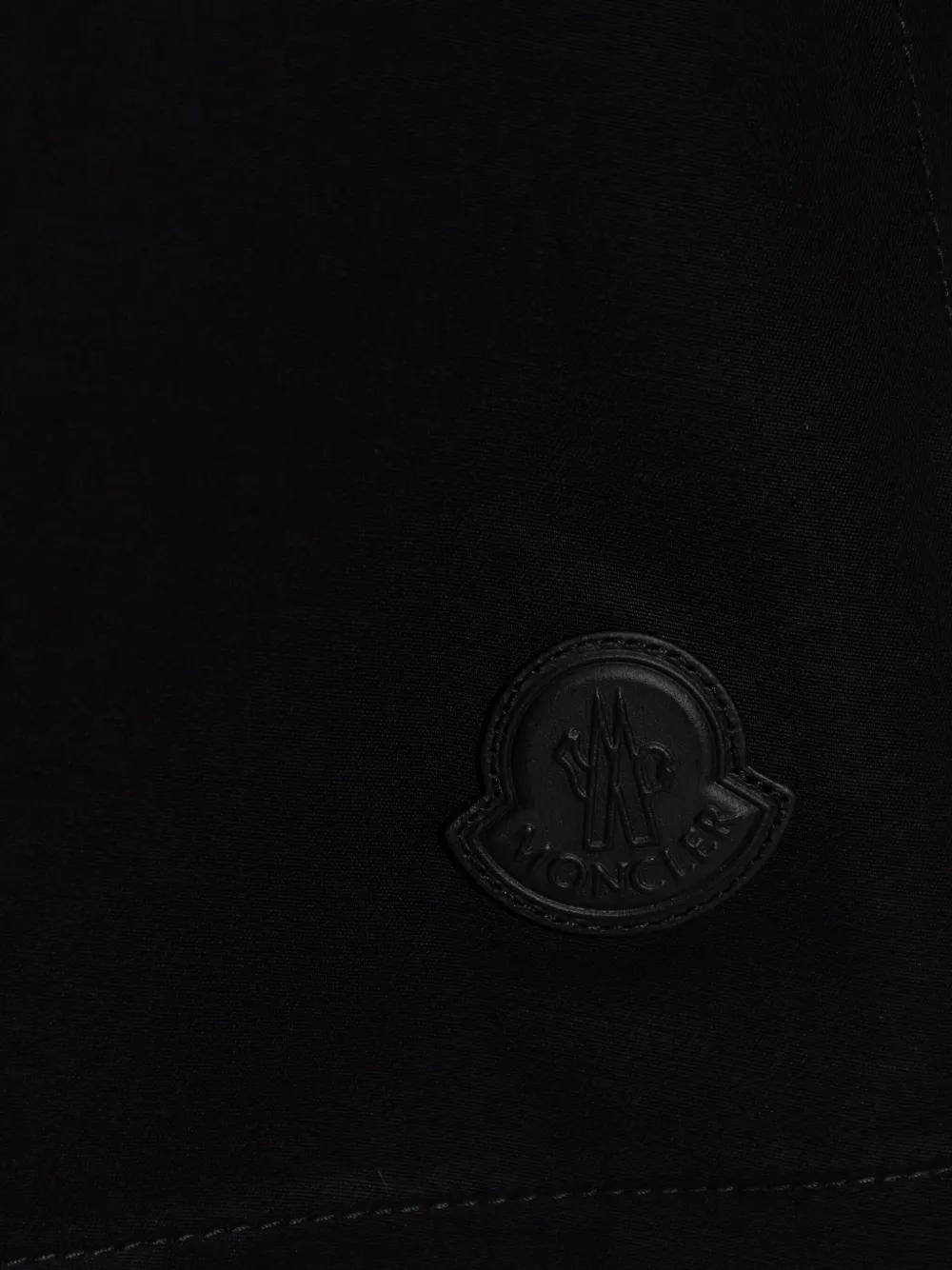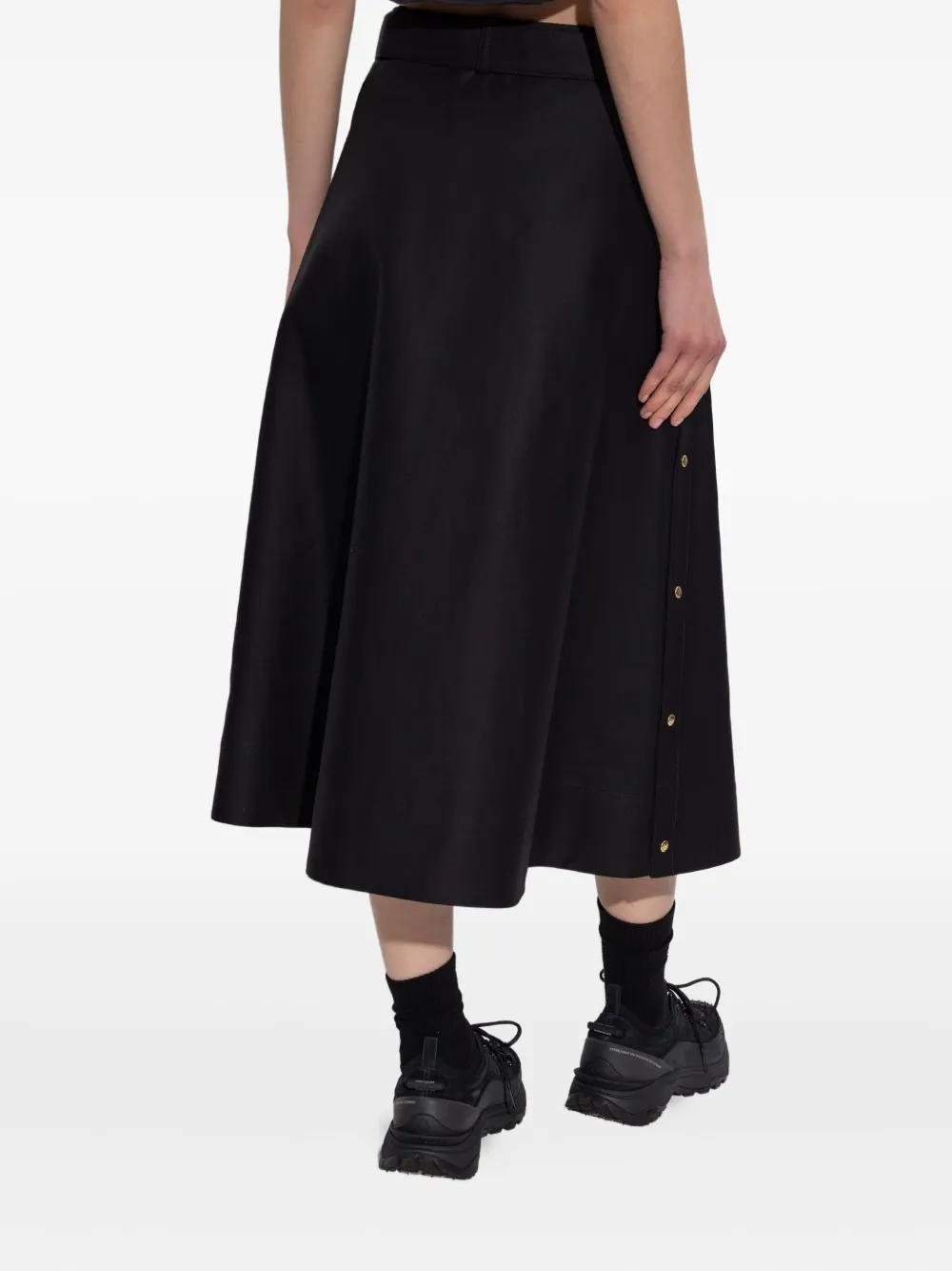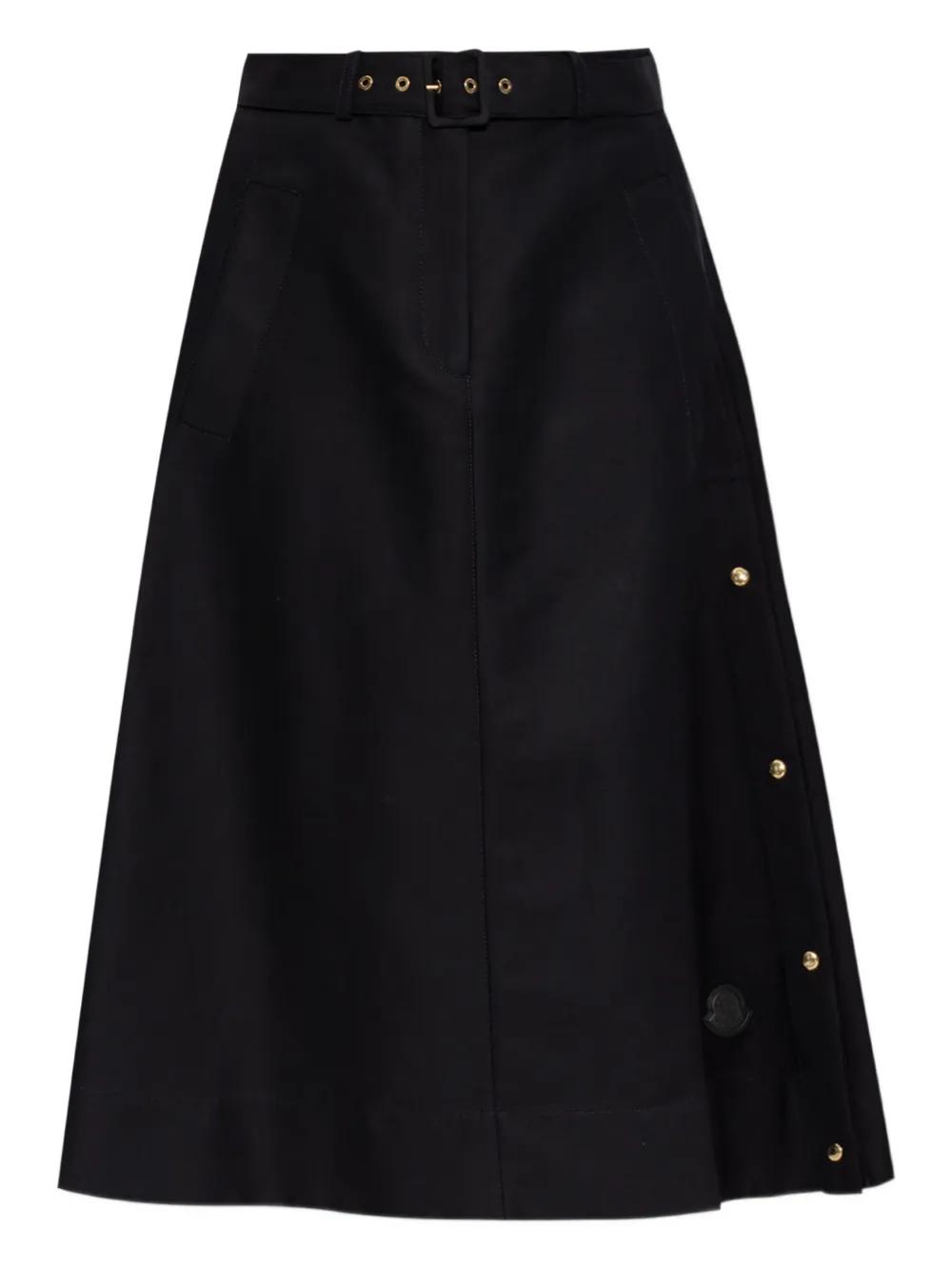black A-line shape belted waist side button fastening welt pockets logo patch