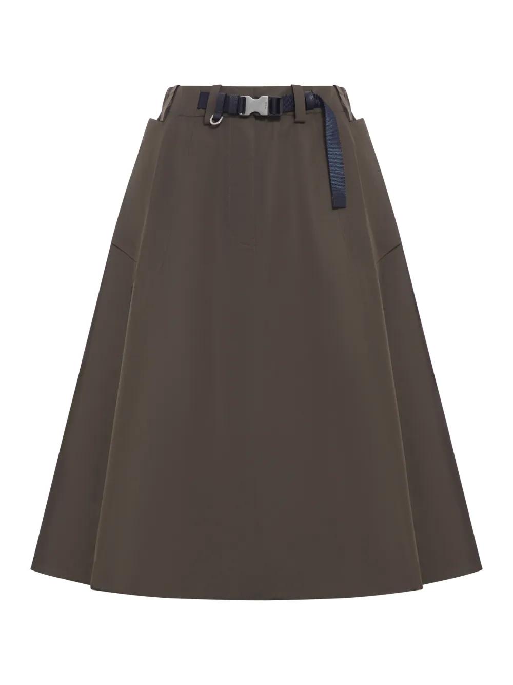 brown cotton sequin embellishment floral pattern elasticated waistband midi length a-line shape side zip fastening side pockets