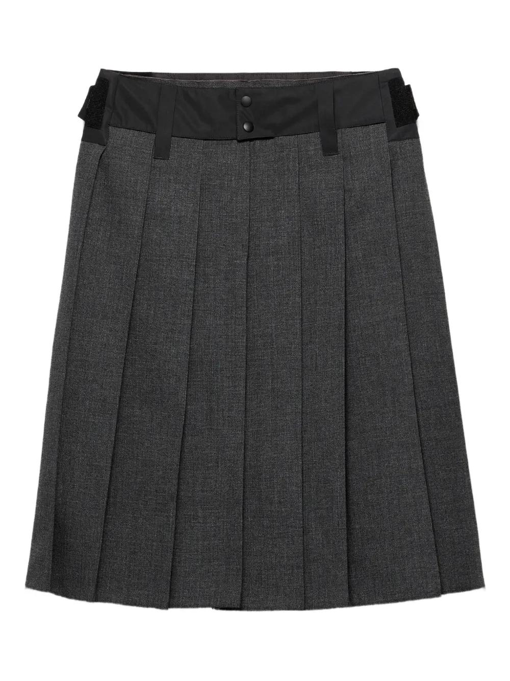 light blue organic cotton denim panelled design logo patch to the rear contrast stitching high waist belt loops off-centre front button fastening classic five pockets two side patch pockets front slit straight hem mid-length