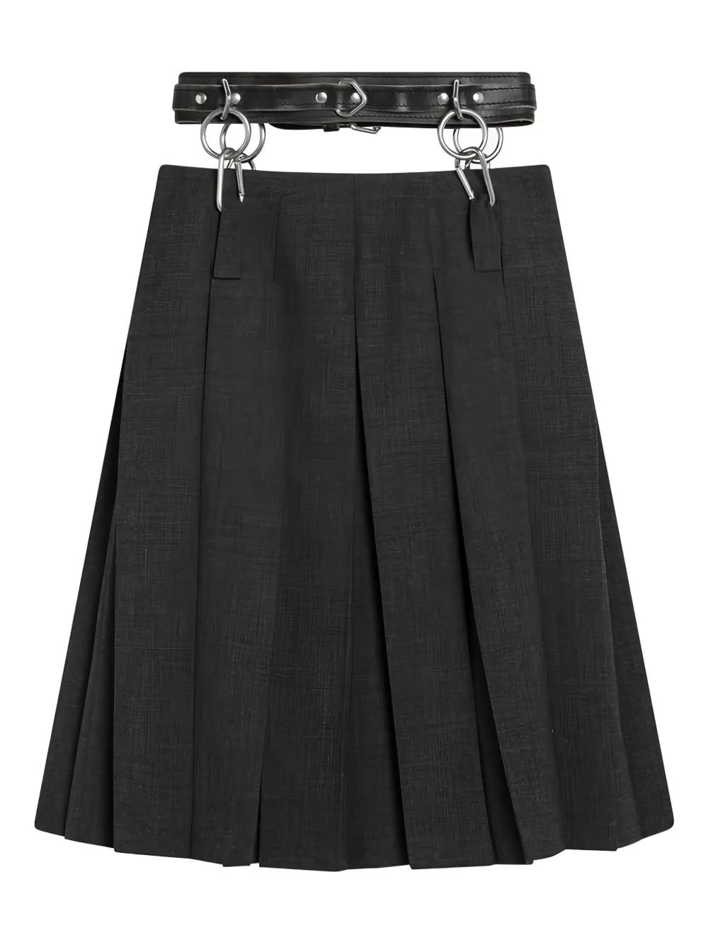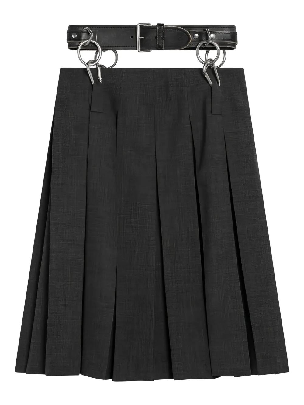 grey pleats belted waist ring detail