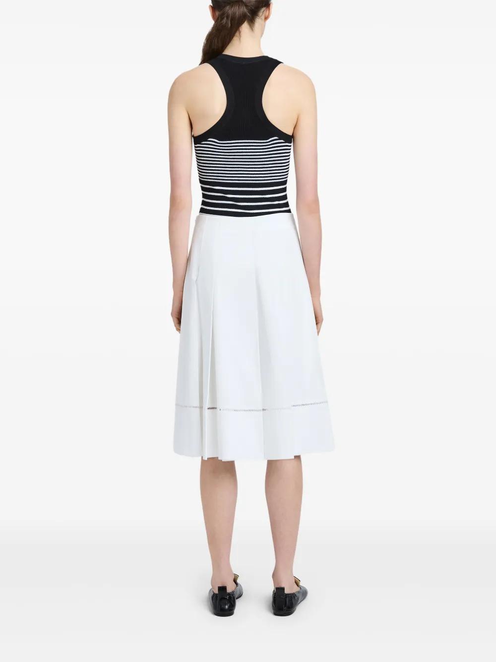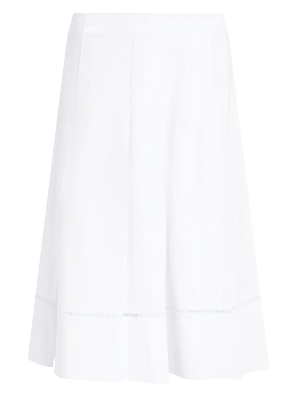 white concealed side zip fastening pleat detailing embroidered detail straight hem