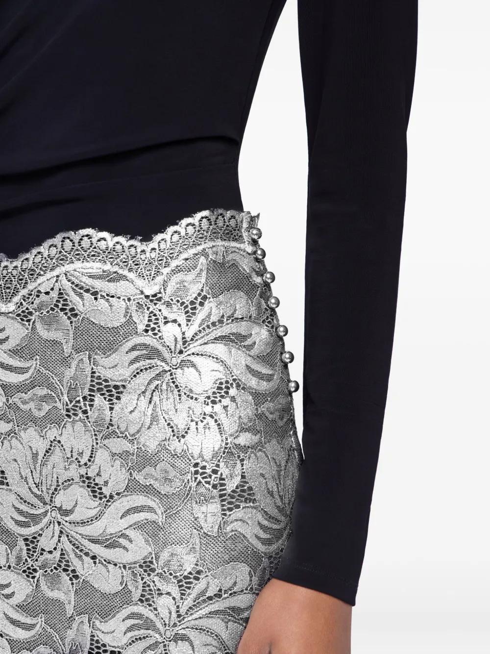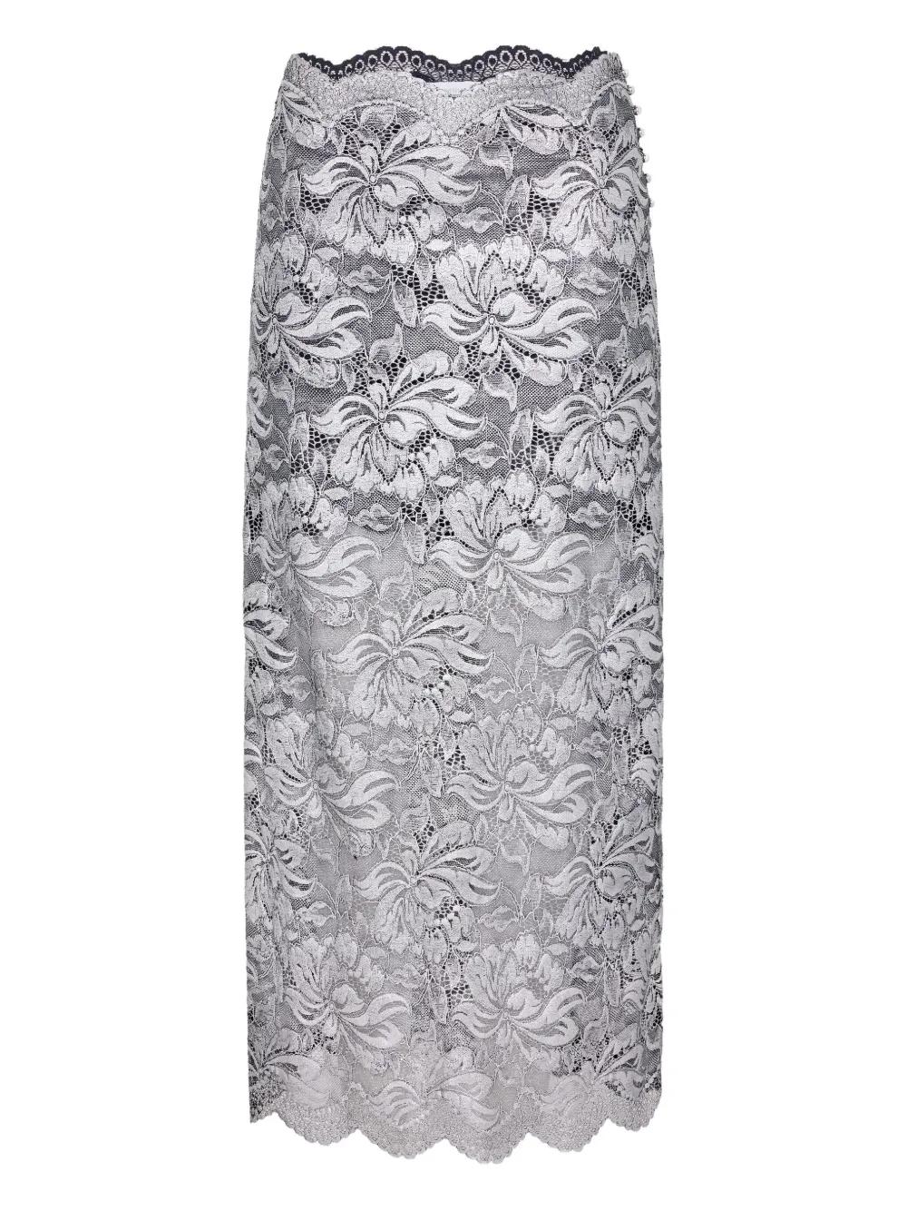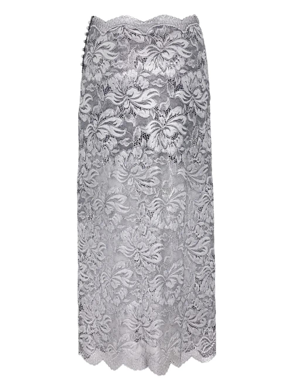 grey floral lace design side button fastening scalloped hem lined interior high-waisted