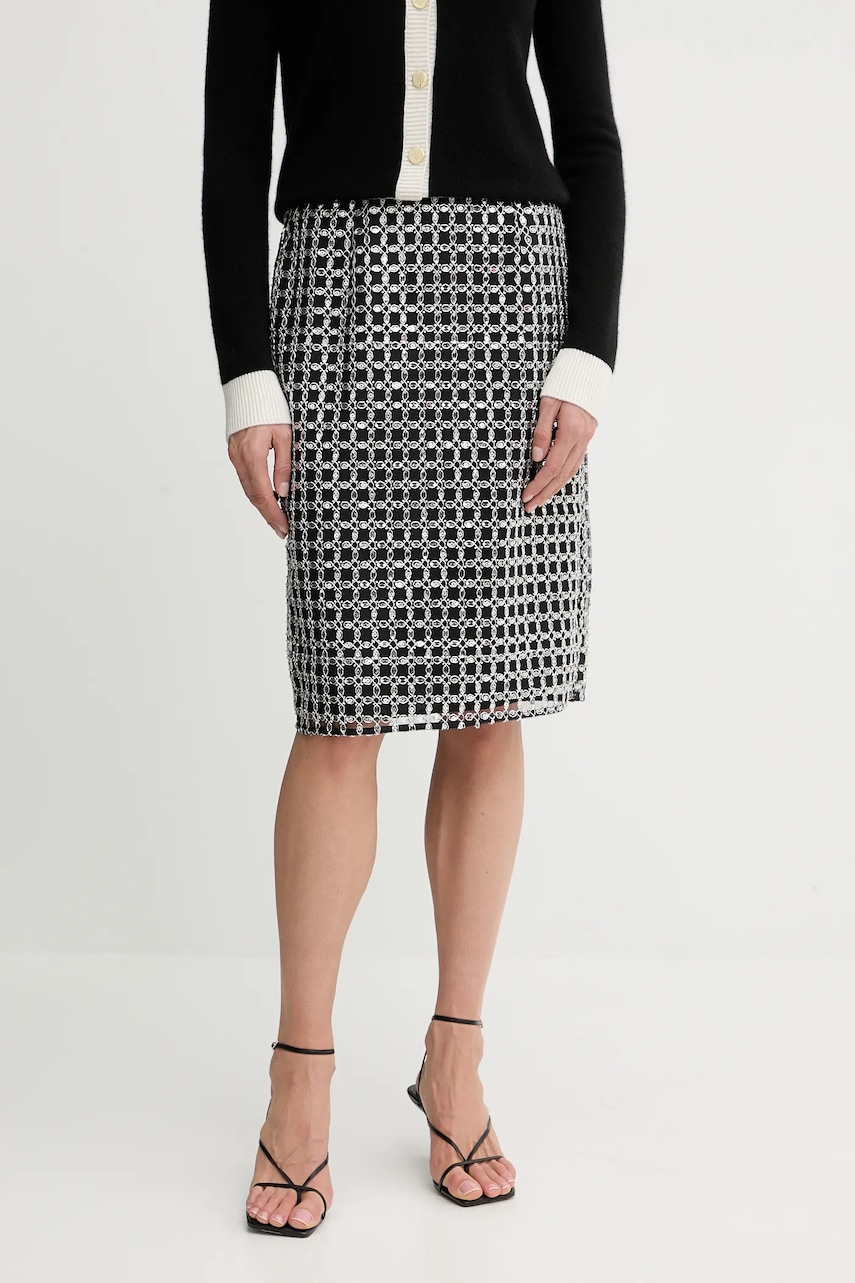 - Produkt zawiera materiały z włókien pochodzących z recyklingu. - Prosty, nie blokujący ruchów fason. - Wygodne zapięcie na suwak ułatwia zakładanie i zdejmowanie. - Ozdobne detale. - Dodatkowa warstwa materiału w postaci podszewki. - Z tyłu rozcięcie, które zapewnia swobodę podczas poruszania się oraz lepsze układanie się materiału. - Szerokość w pasie: 37 cm. - Długość spódnicy: 60 cm. - Wymiary podane dla rozmiaru: 36.
