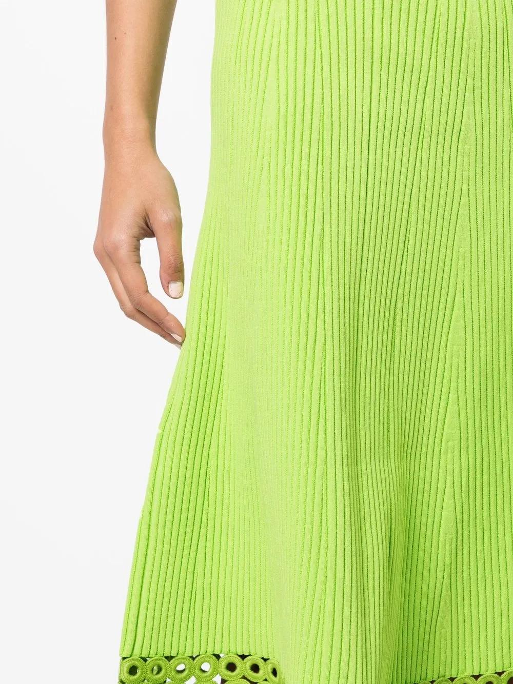 lime green stretch-design ribbed detailing cut-out detailing high-waisted ribbed waistband A-line mid-length