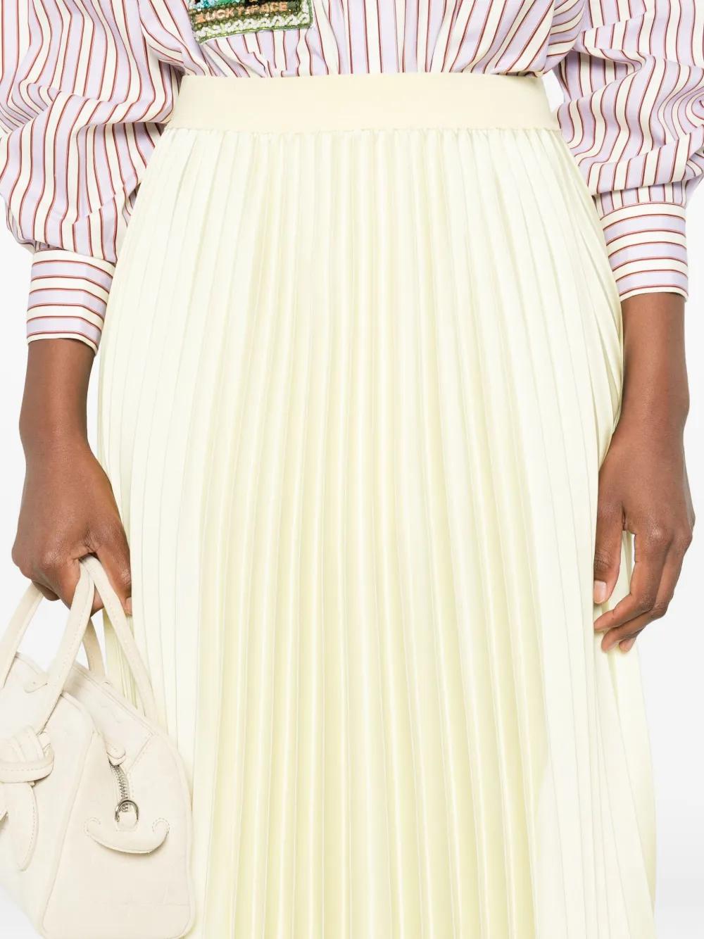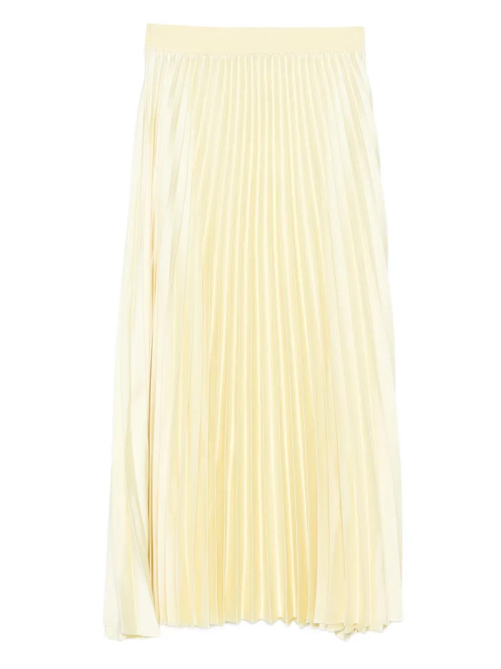 pale yellow pleated design a-line shape high waist elasticated waistband