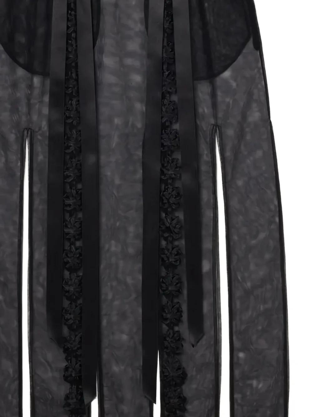 black ribbon detailing multiple slits ruffled trim ribbon waist tie
