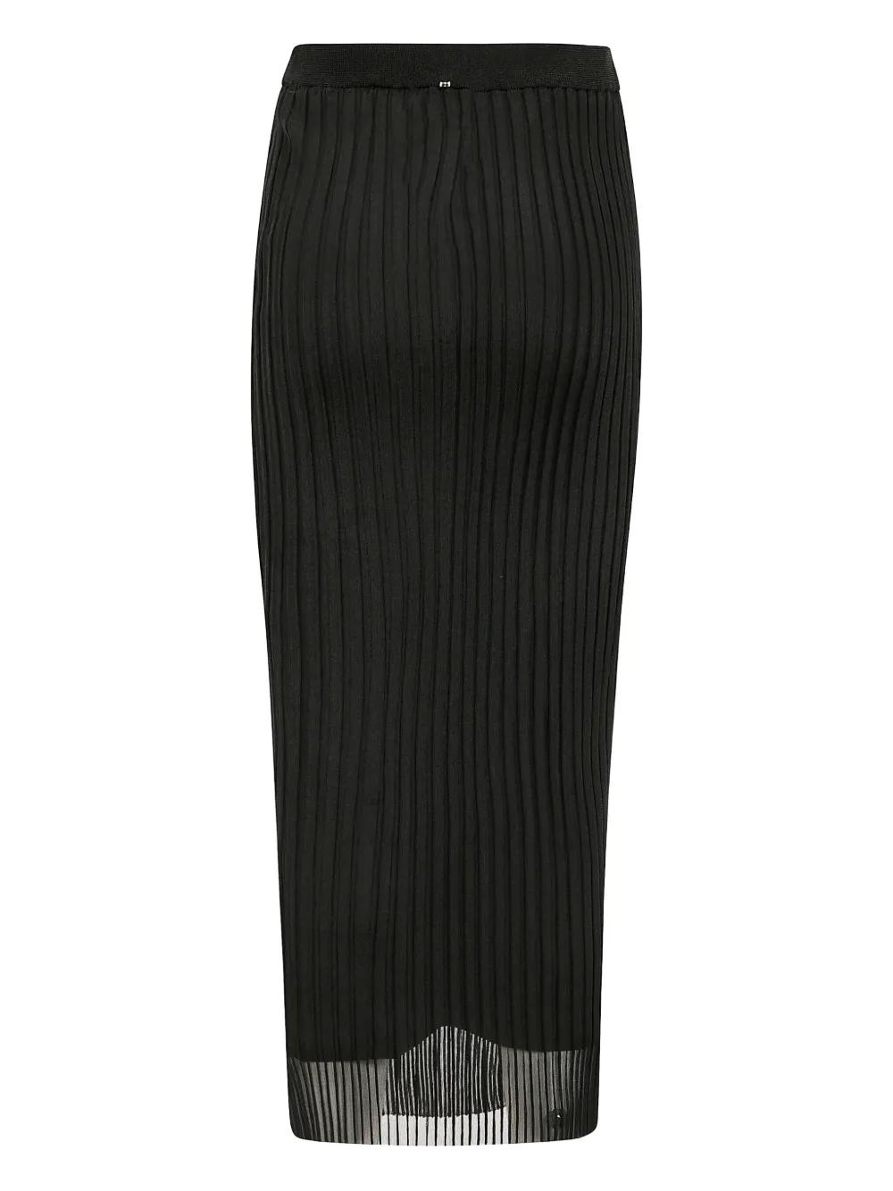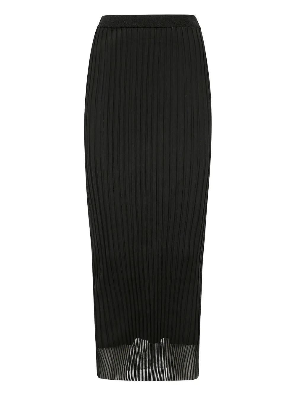 black intricate pleating elasticated waistband partial lining pencil silhouette