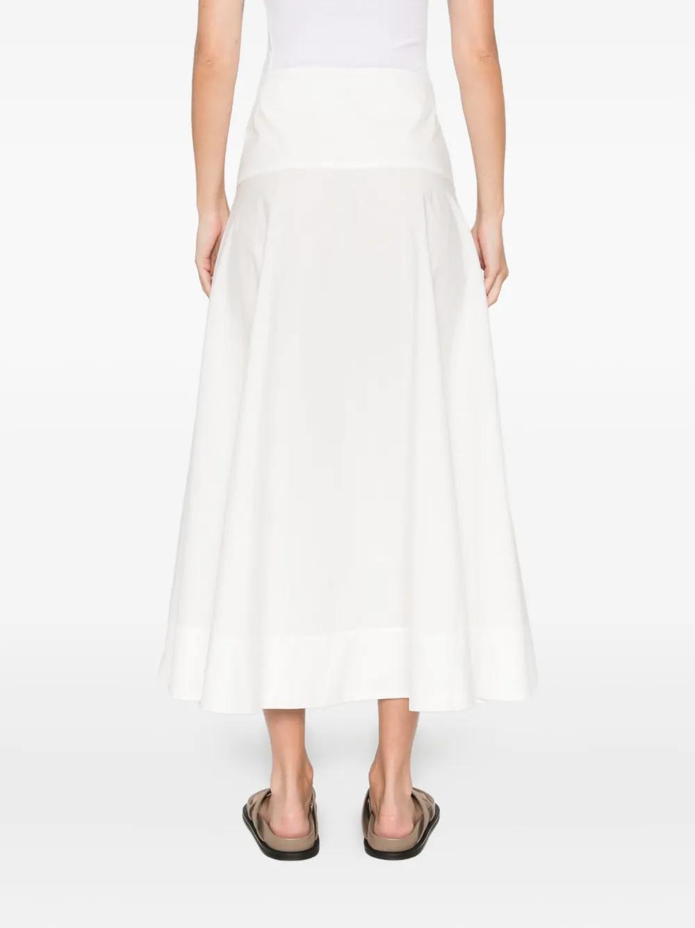 cream nude fully pleated high waist front tie fastening asymmetric hem mid-length