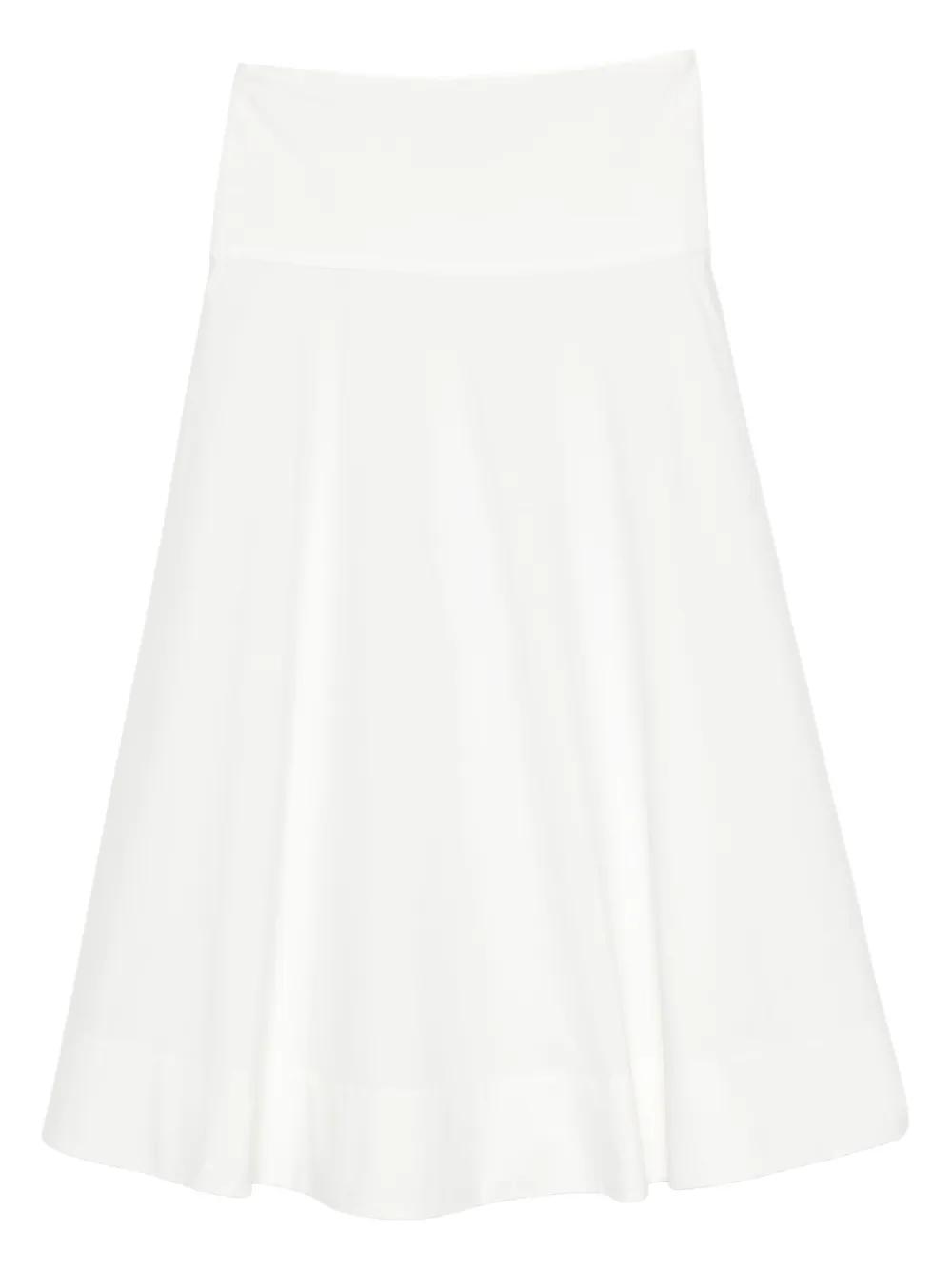 - Rozkloszowany fason. - Podwyższony stan. - Elastyczna listwa w pasie. - Satynowe wykończenie. - Gładka tkanina. - Model o długości maxi. - Szerokość w pasie: 35 cm. - Długość z przodu: 82 cm. - Długość z tyłu: 86 cm. - Wymiary podane dla rozmiaru: S.