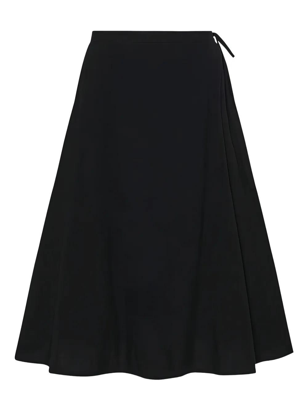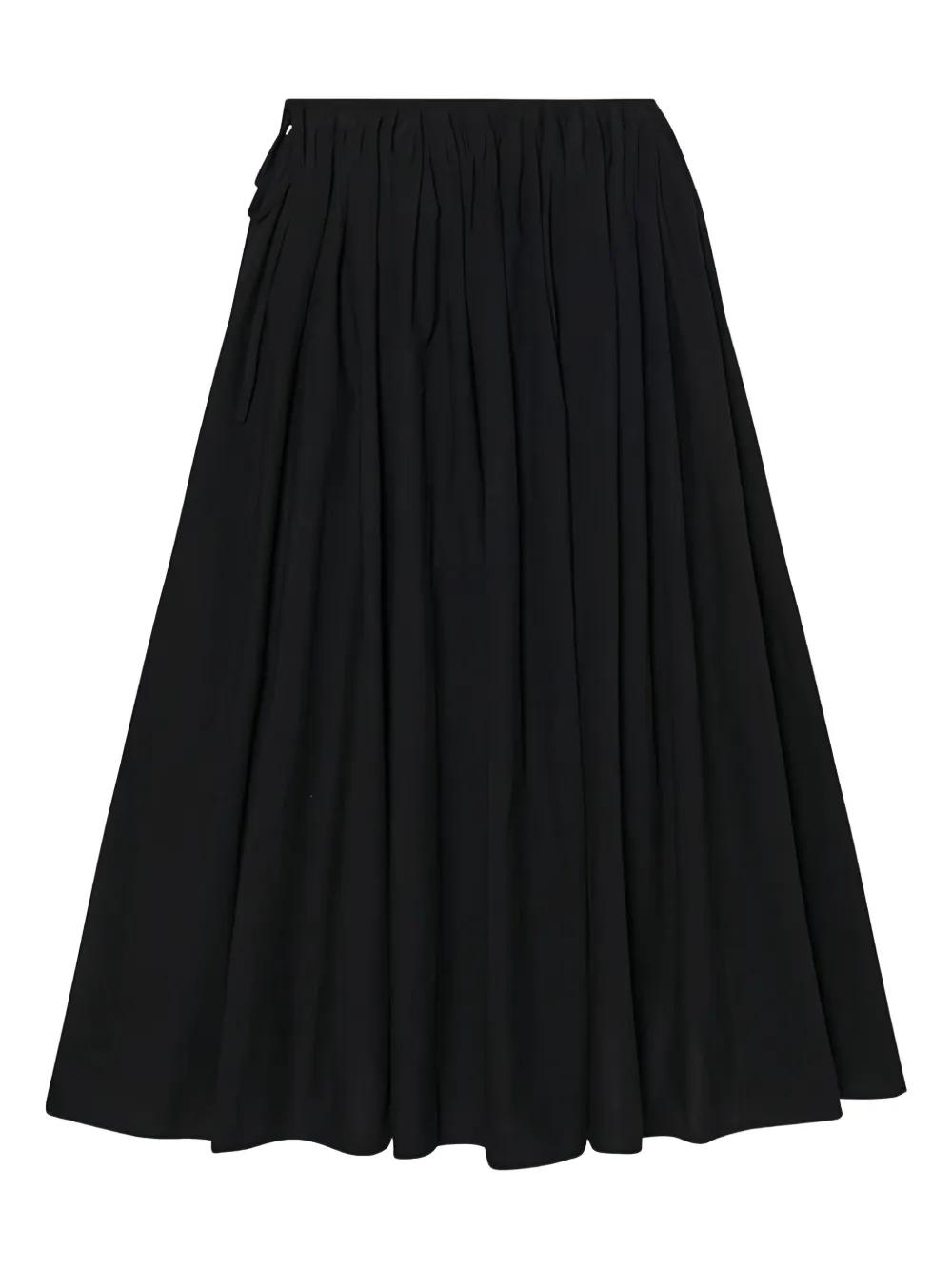 black pleated detailing drawstring waist A-line shape side seam pockets cotton