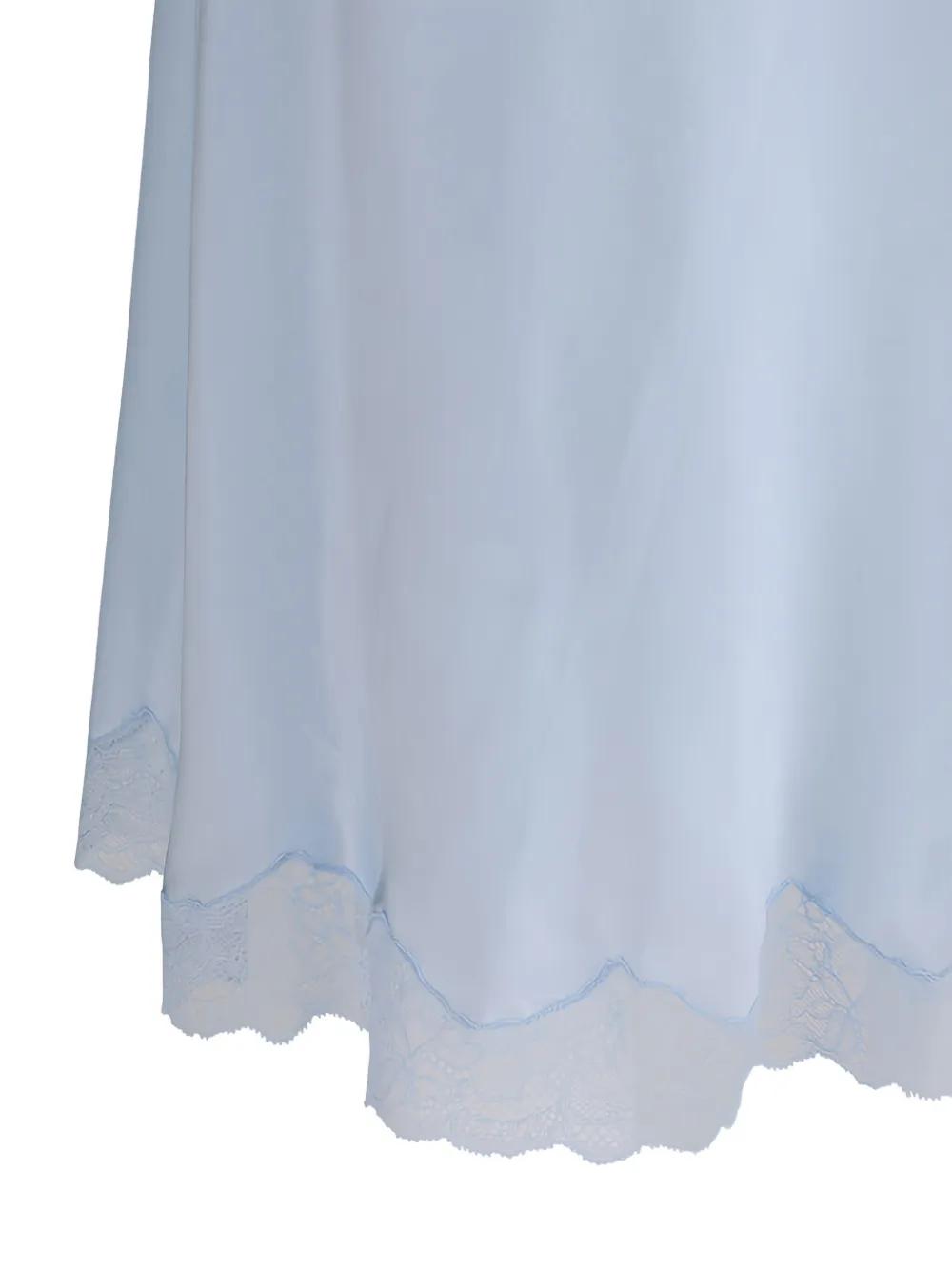 black gathered detail drawstring waist asymmetrical hem lace trim midi length