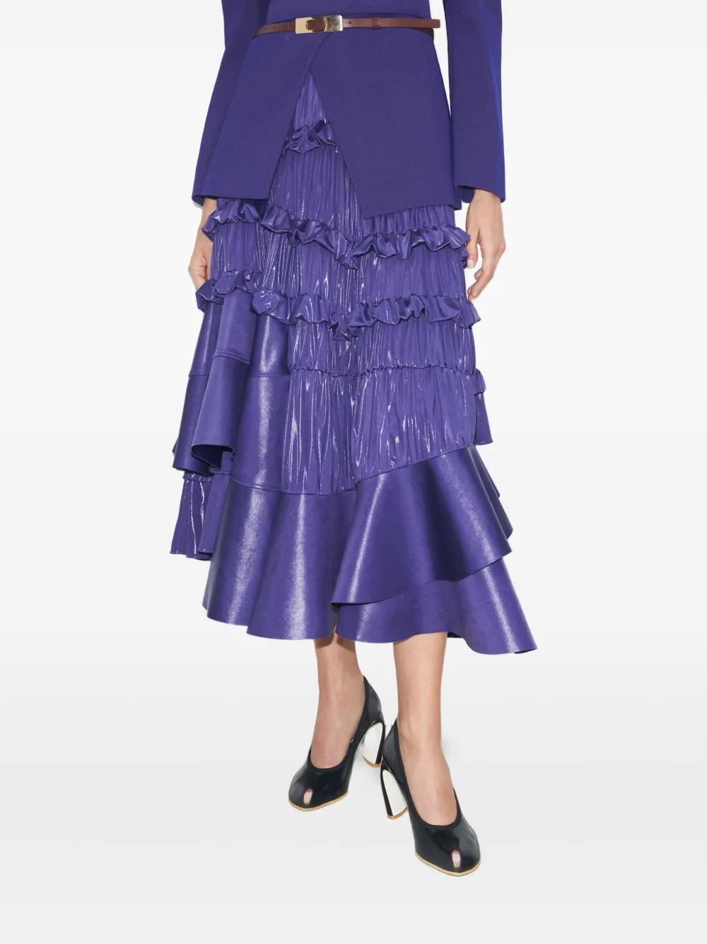 Tory Burch Liquid jersey ruffle pleated midi skirt - Blue