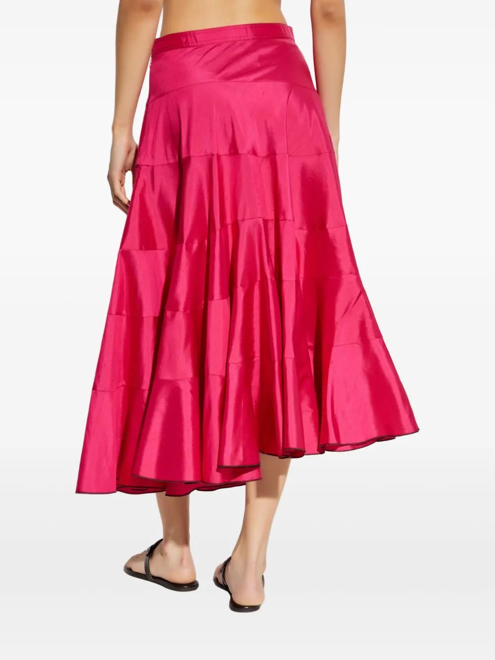 fuchsia pink side zip fastening asymmetric design panelled design flared