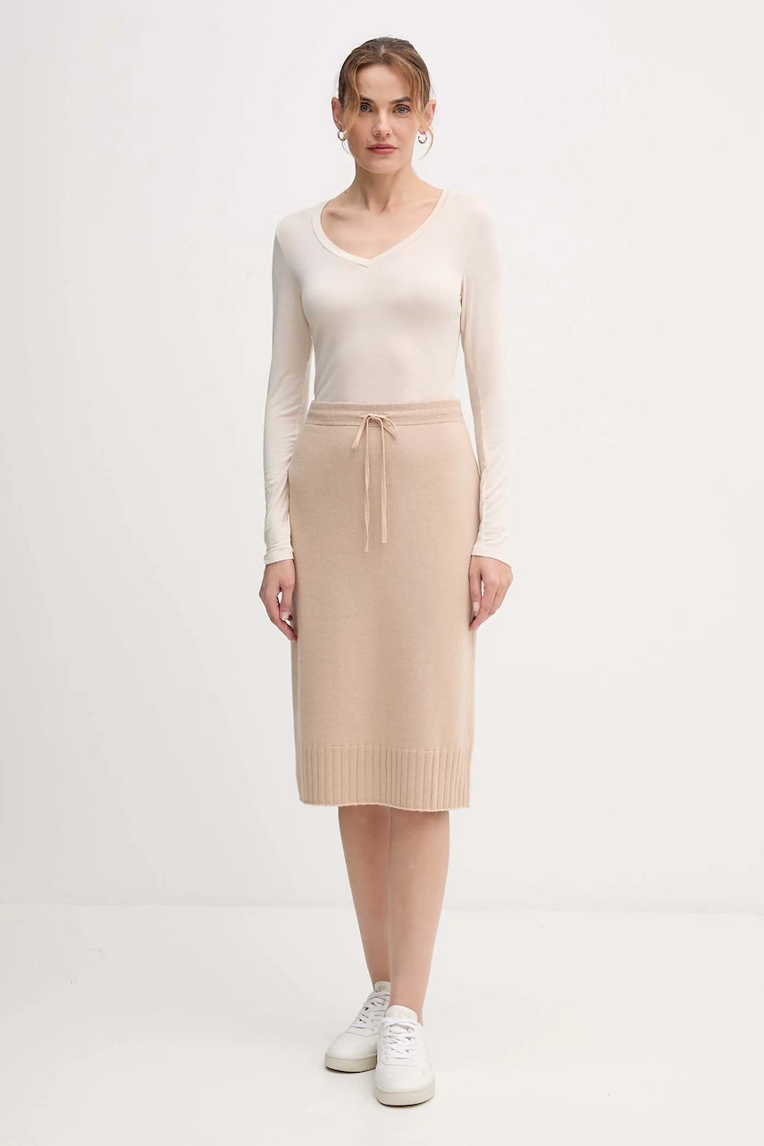 United Colors of Benetton spódnica z dodatkiem wełny kolor beżowy midi prosta 112HD001V