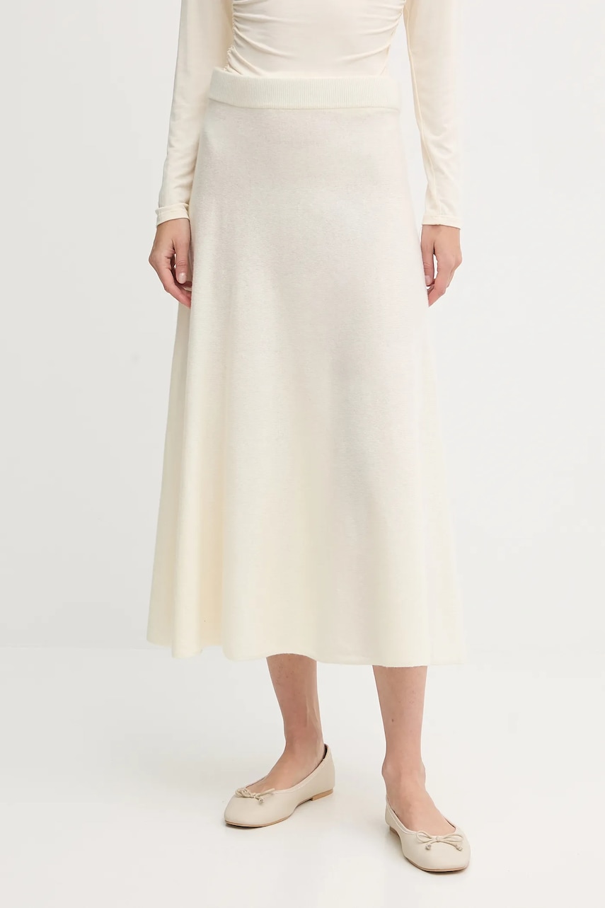 United Colors of Benetton spódnica z dodatkiem wełny kolor beżowy midi rozkloszowana 1444D002B