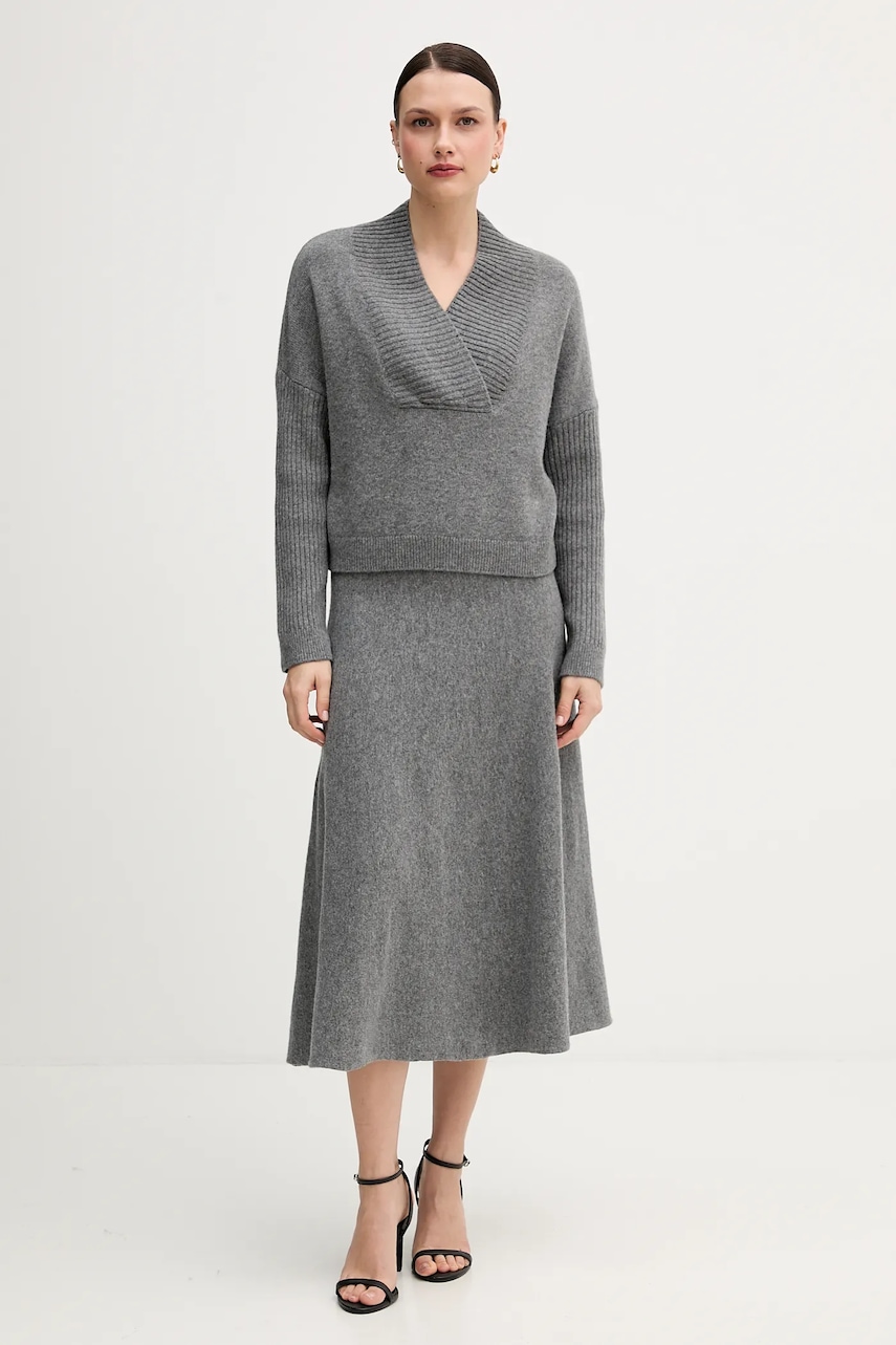 United Colors of Benetton spódnica z dodatkiem wełny kolor szary midi rozkloszowana 1444D002B