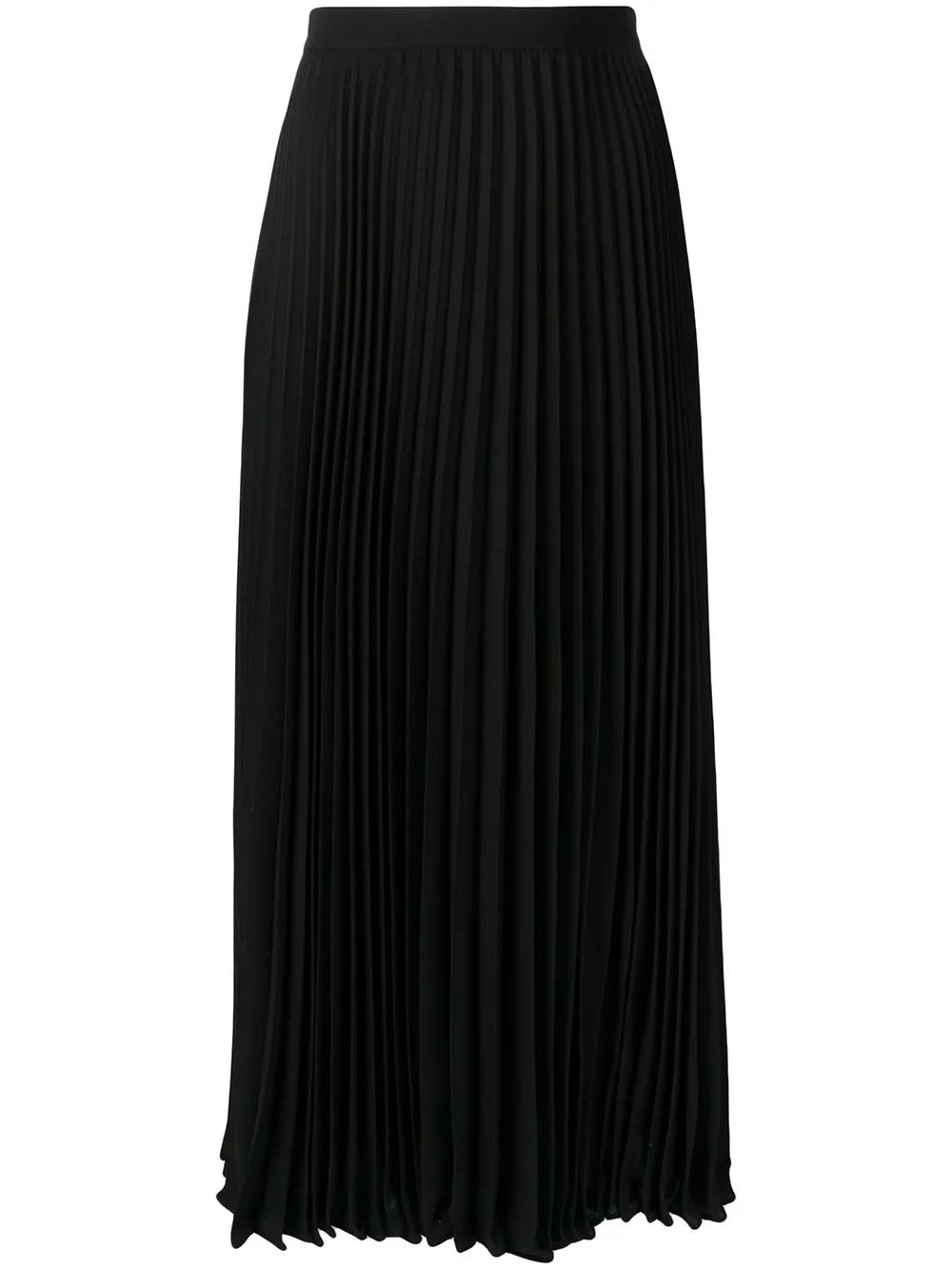 Born in the midst of 1960s Italian glamour, Valentino never forgets its roots. Think expert craftsmanship and luxurious finishings, even when the brand takes a more modern path to get there. This black silk pleated midi skirt from Valentino features a fitted waist and a side zip fastening.