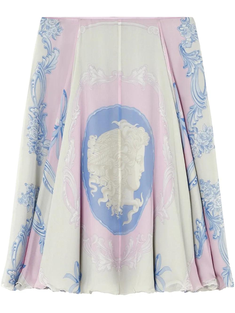white concealed side zip fastening Medusa Head motif pleat detailing mid-rise