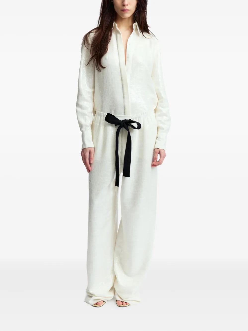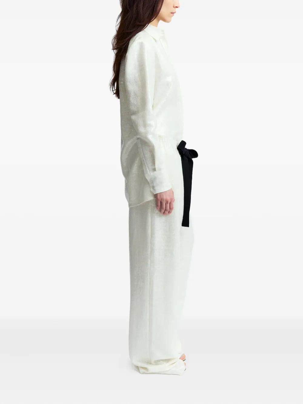 camel elasticated waistband side seam detail side slip pockets crafted from merino wool
