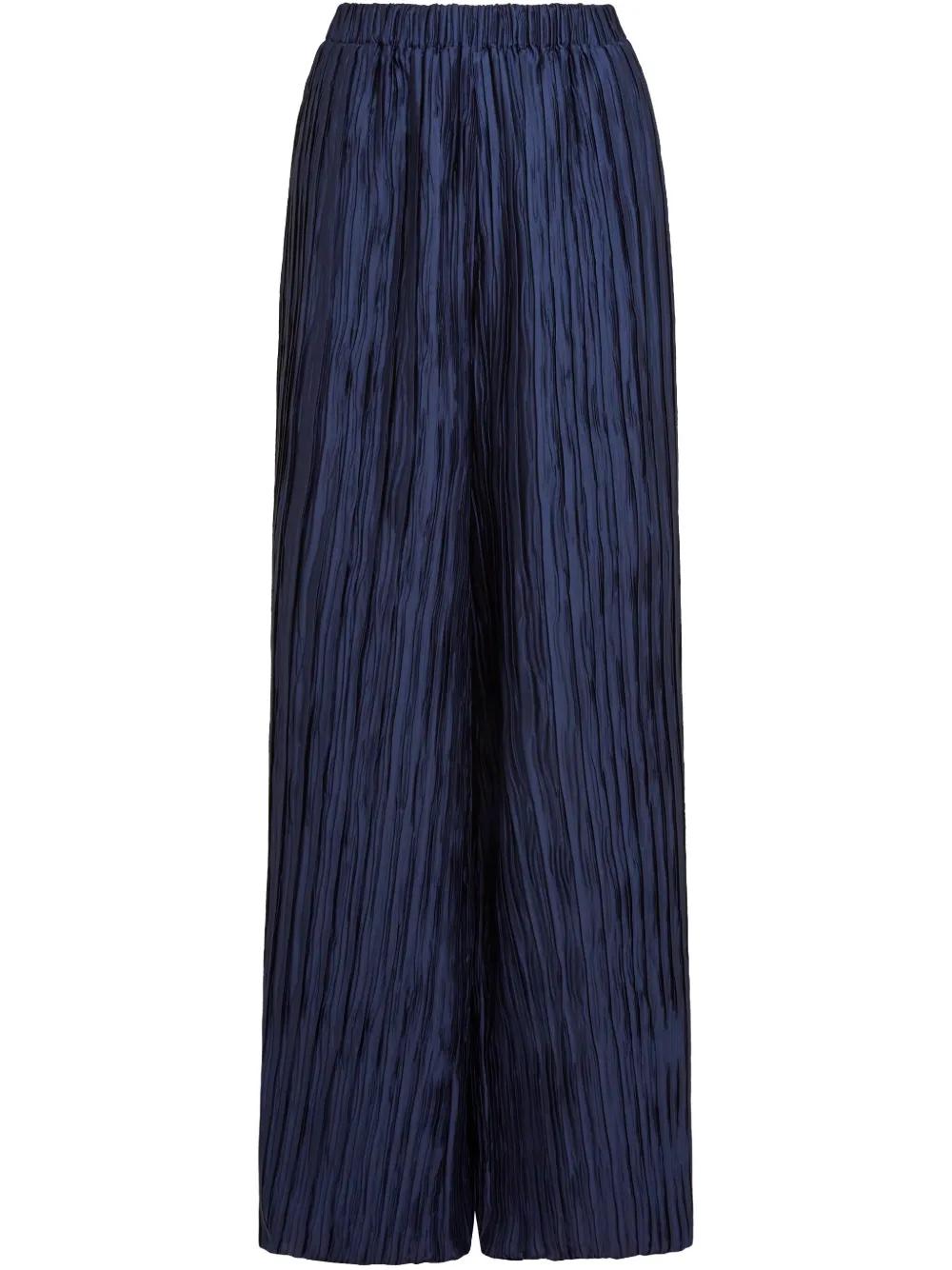 navy blue satin finish elasticated waistband fully pleated palazzo design straight hem