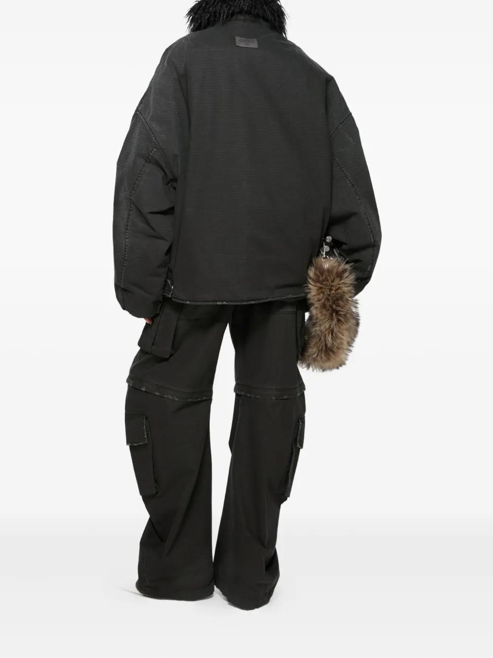black cotton multiple cargo pockets front button and zip fastening belt loops
