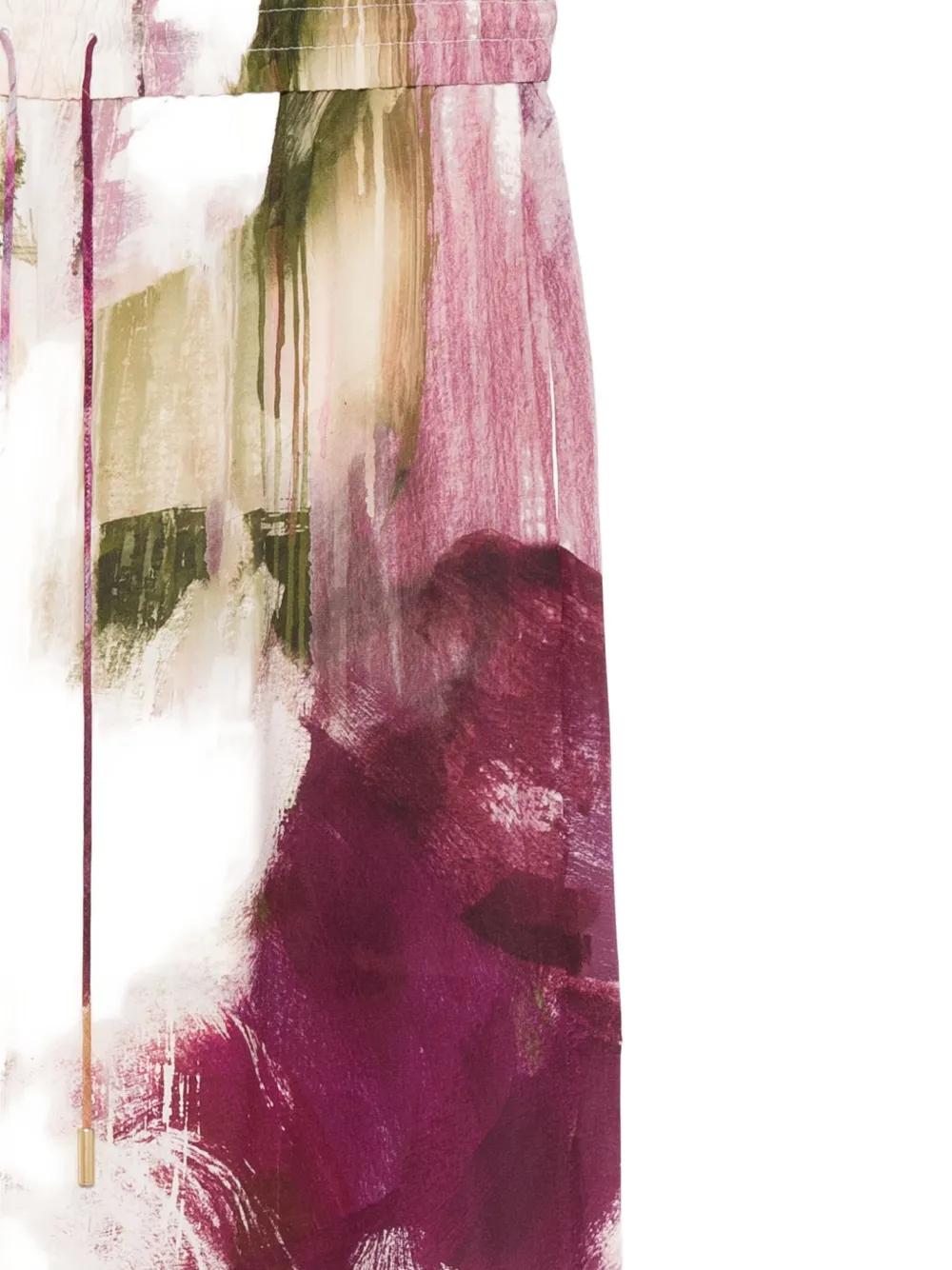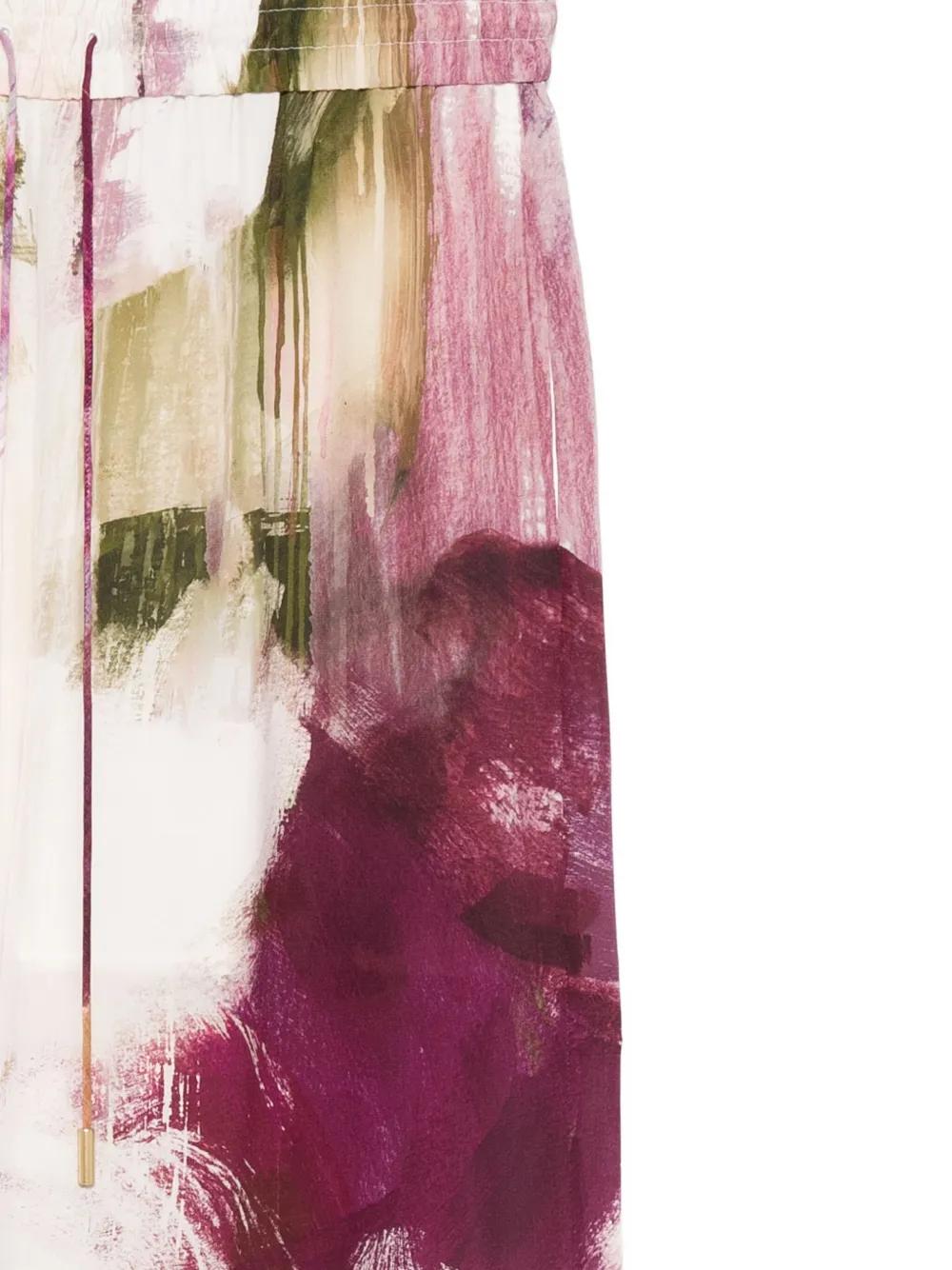 beige and multicolour abstract print elasticated waistband side seam pockets