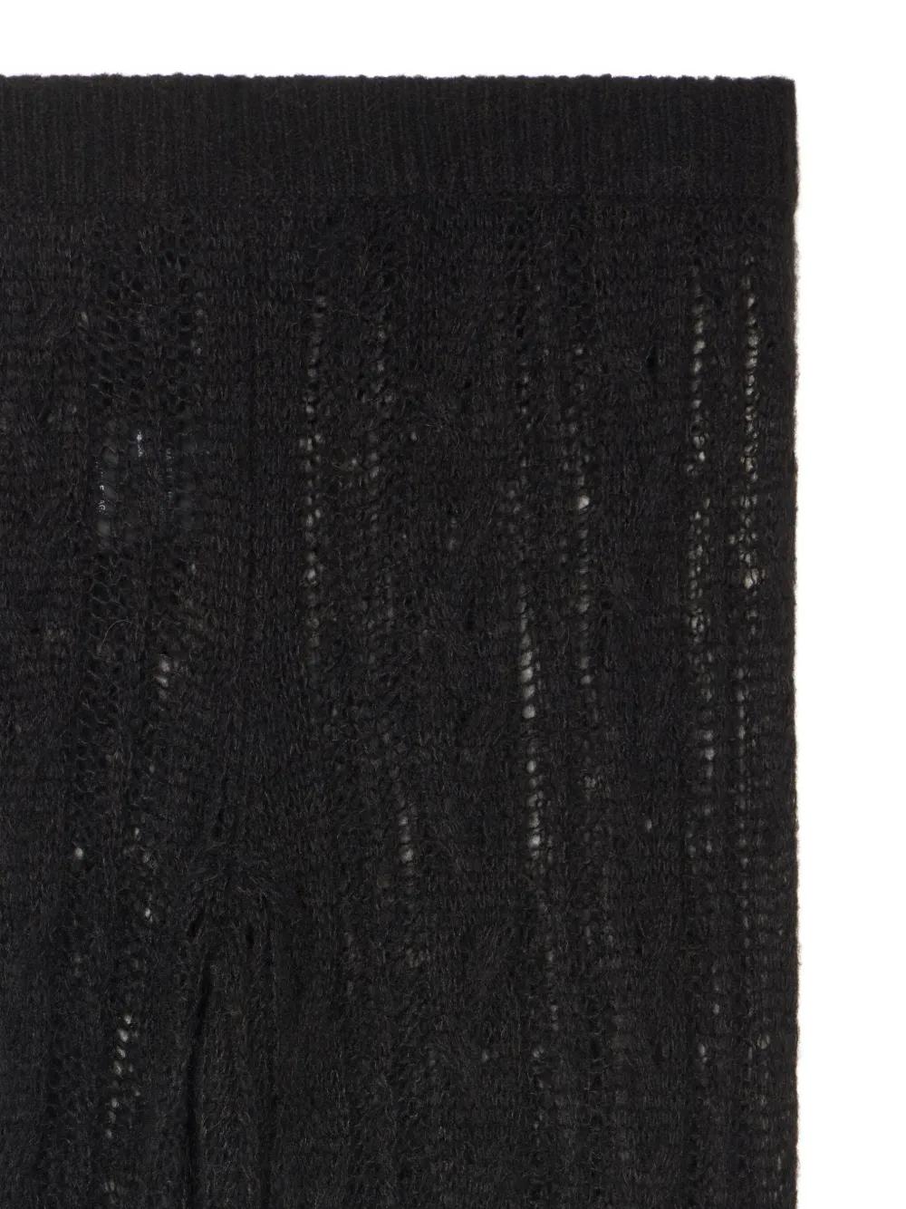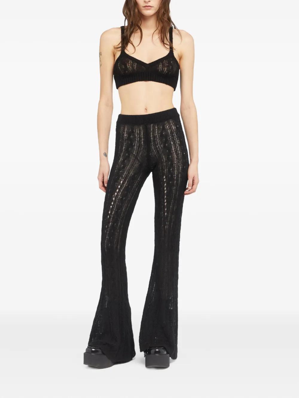 black wool blend stretch-design metallic threading sheer low-rise bootcut