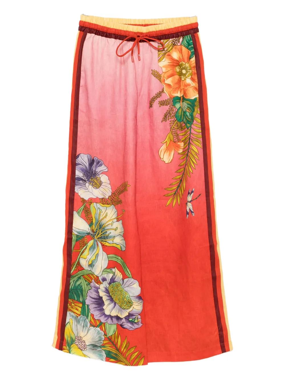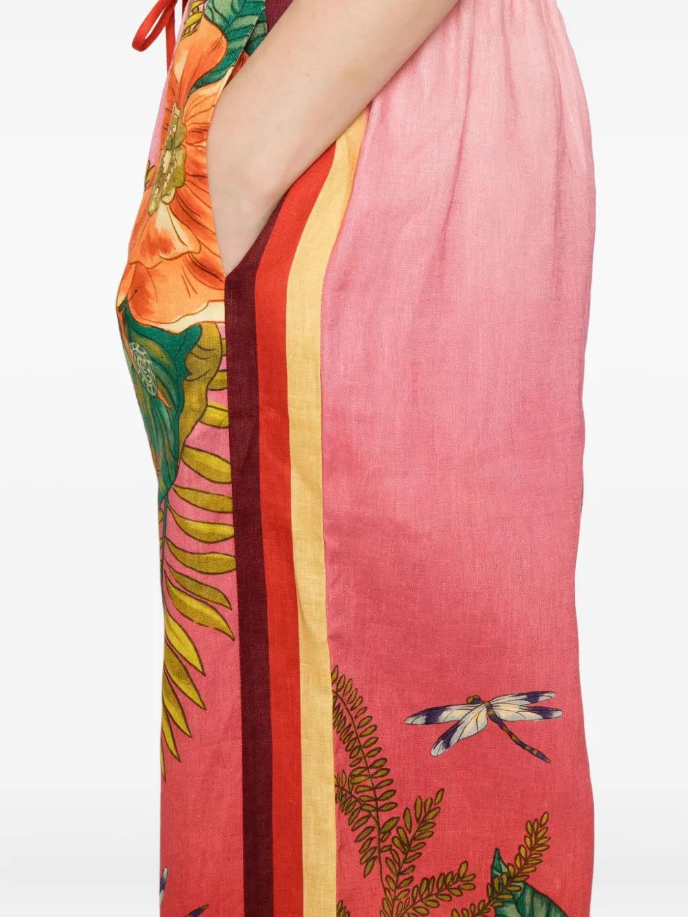 raspberry pink elasticated drawstring waistband two side slit pockets floral print